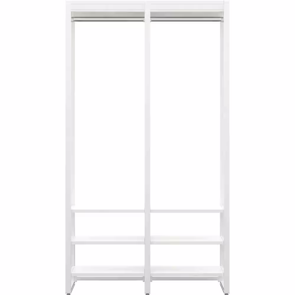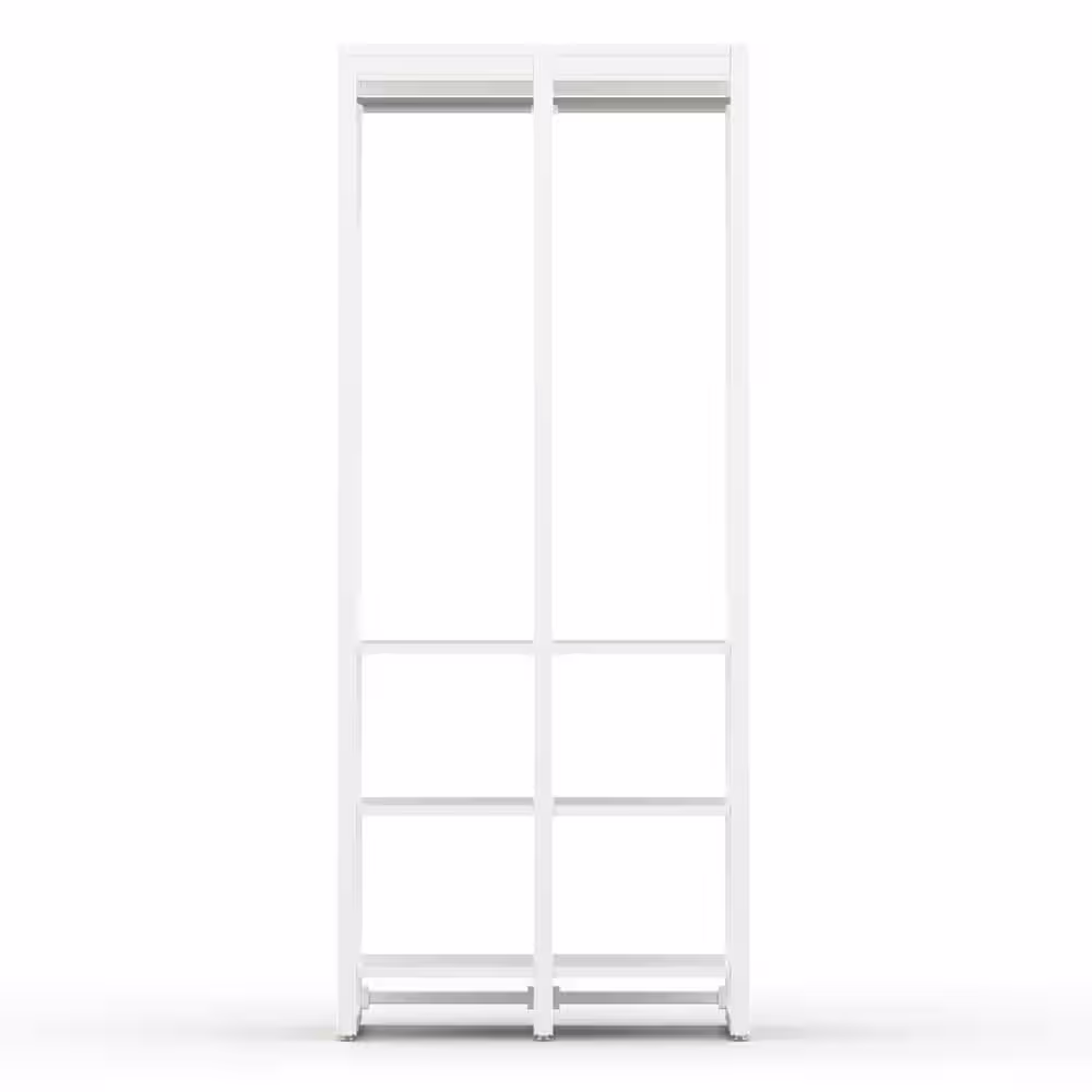 None Fiona 143 in. W White Freestanding Walk in Wood Closet System with Metal Frame