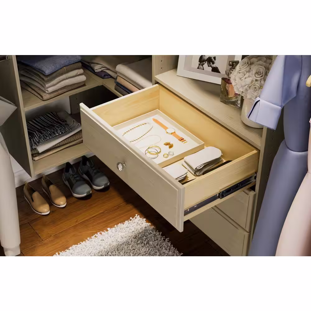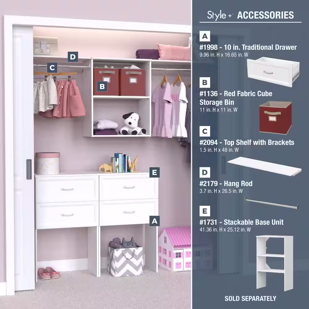 ClosetMaid Selectives 85 in. W x 121 in. W White Basic Plus Standard Wood Closet System Kit with Drawer and Doors