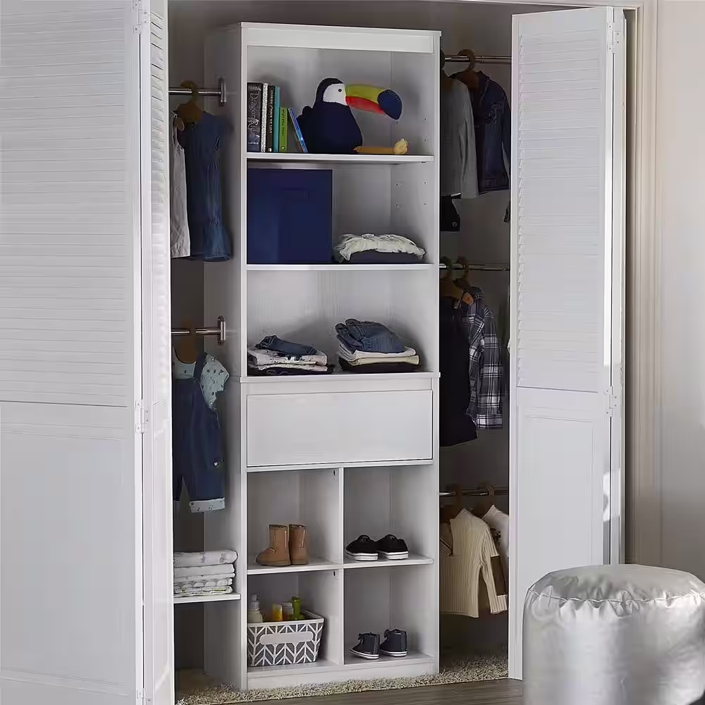 SimplyNeu 14 in. D x 25.375 in. W x 84 in. H White Medium Hanging Tower Wood Closet System Kit