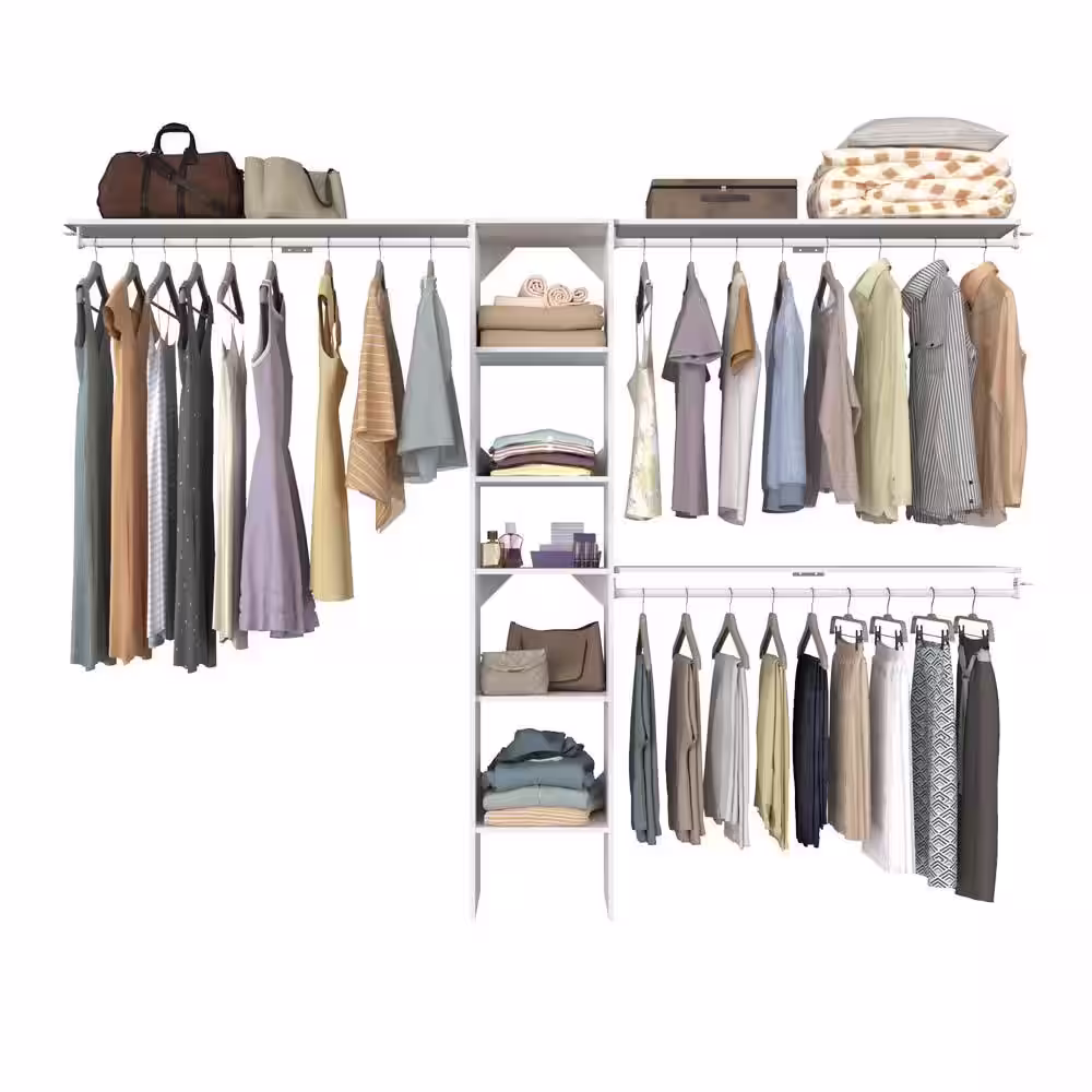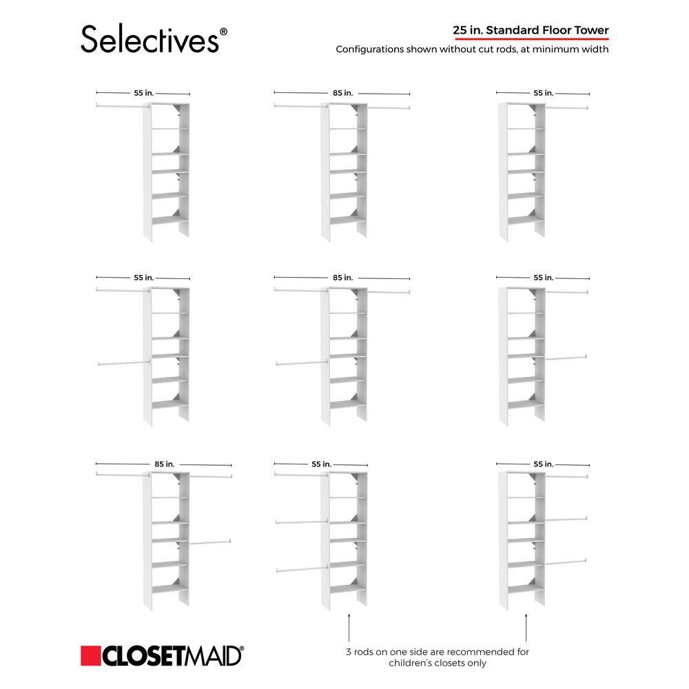 ClosetMaid Selectives 76.85 in. W x 112.85 W White Basic Narrow Wood Closet System Kit with Top Shelves