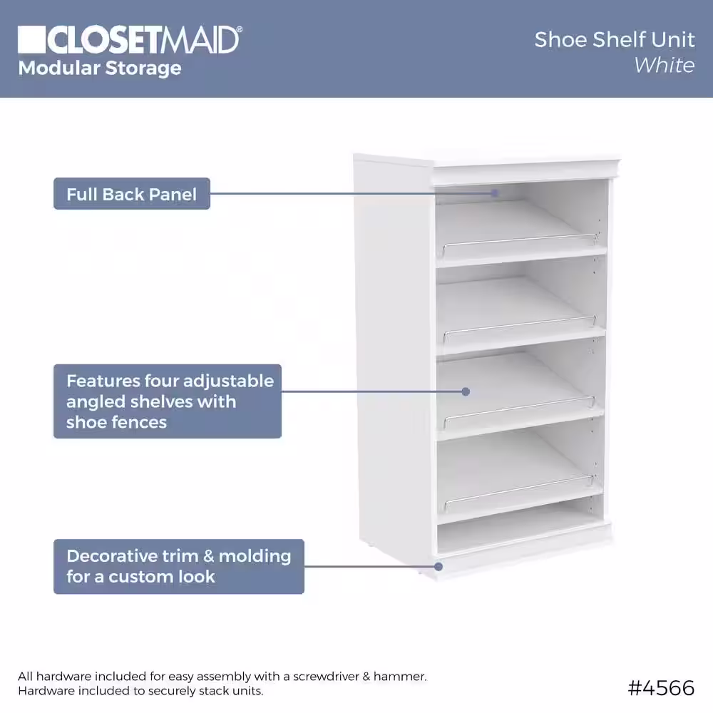 ClosetMaid 21.39 in. W White Modular Storage Stackable Wood Shoe Shelf Unit Wood Closet System