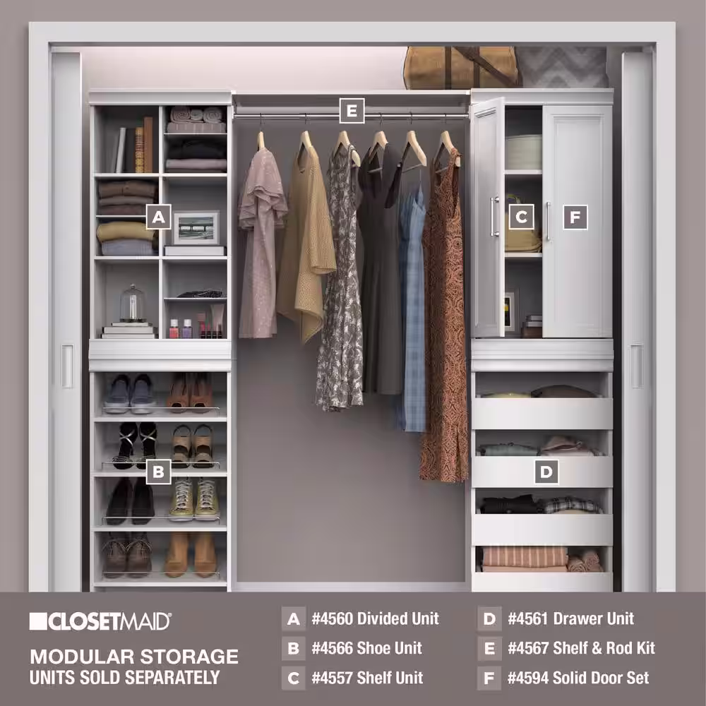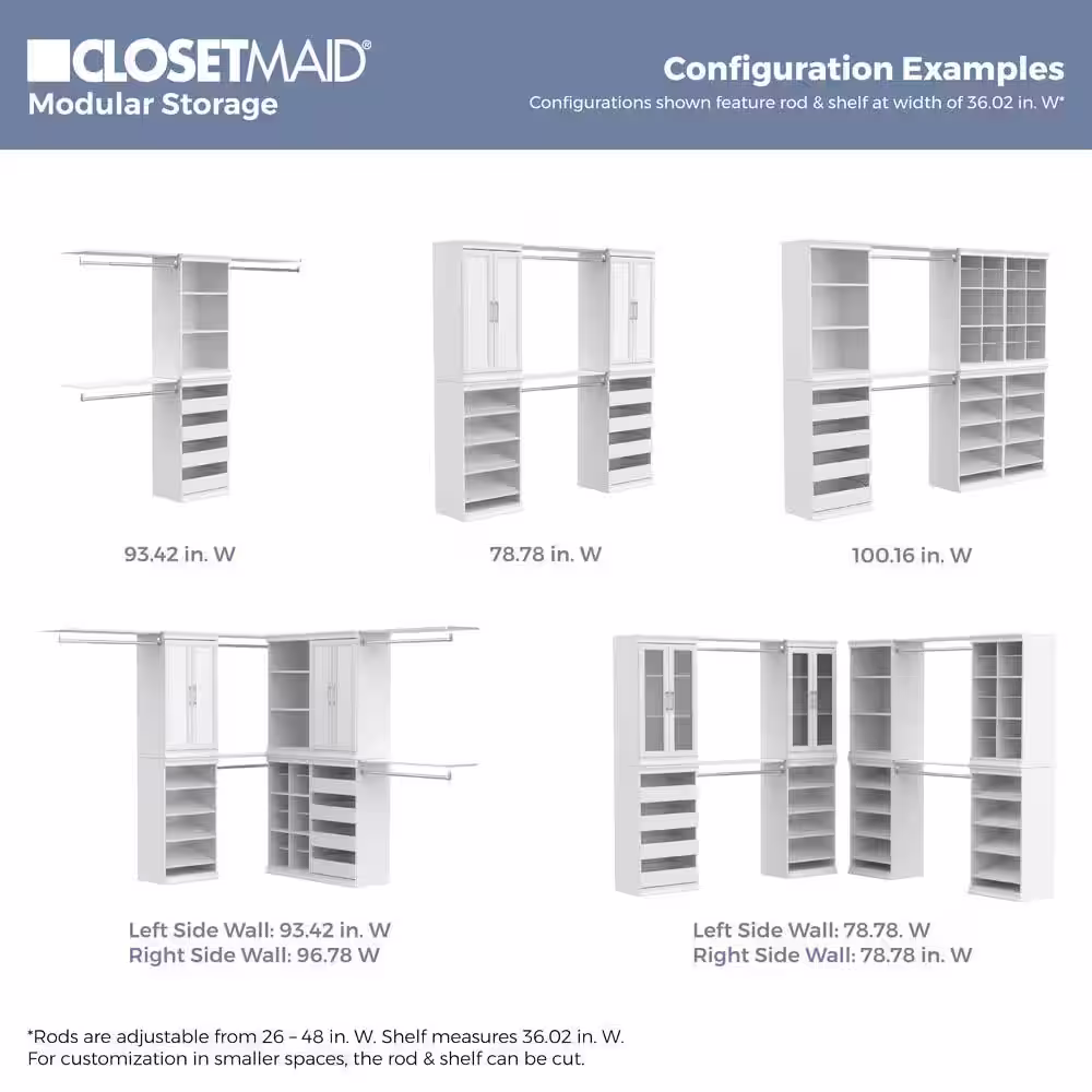 Closet Evolution Essential 60 in. W - 96 in. W White Wood Closet System