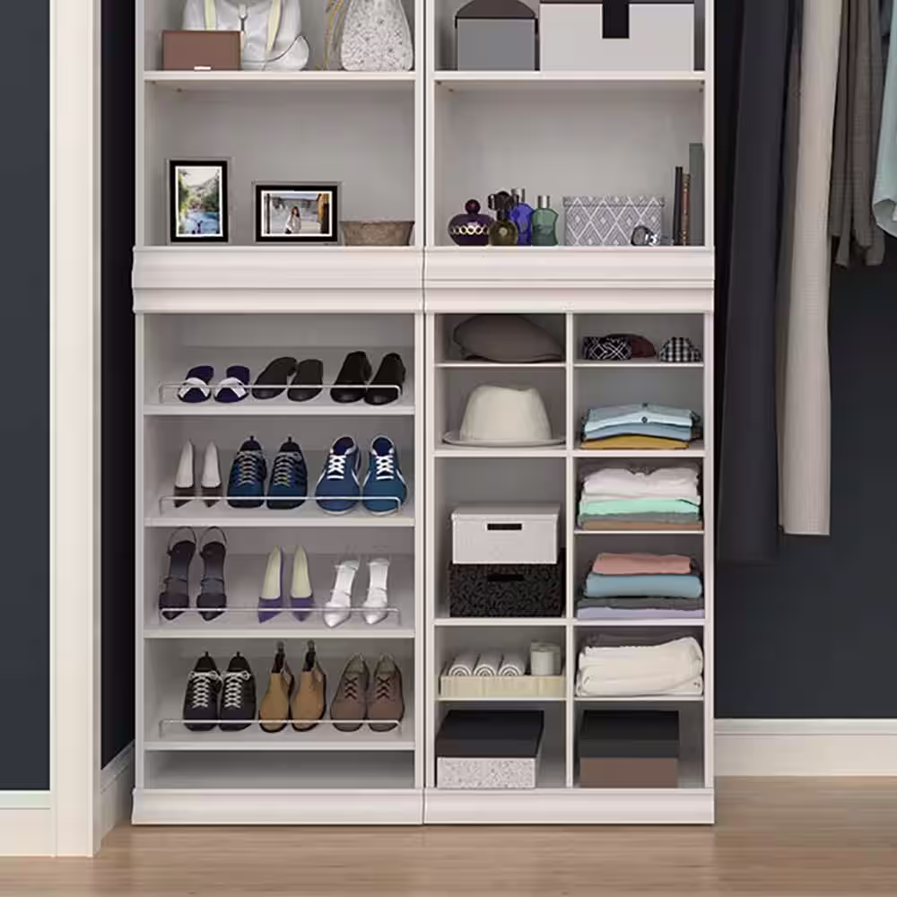 SimplyNeu 14 in. D x 25.375 in. W x 84 in. H White Shoe Storage Tower Wood Closet System Kit