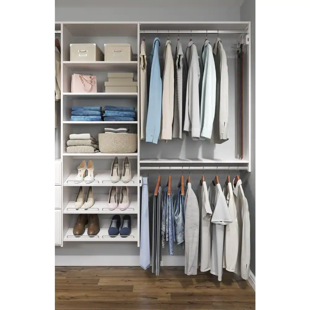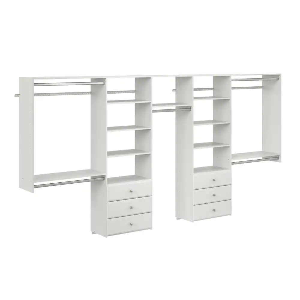 Closet Evolution Dual Tower 96 in. W - 120 in. W White Tower System Wall Mount 14-Shelf Wood Closet System
