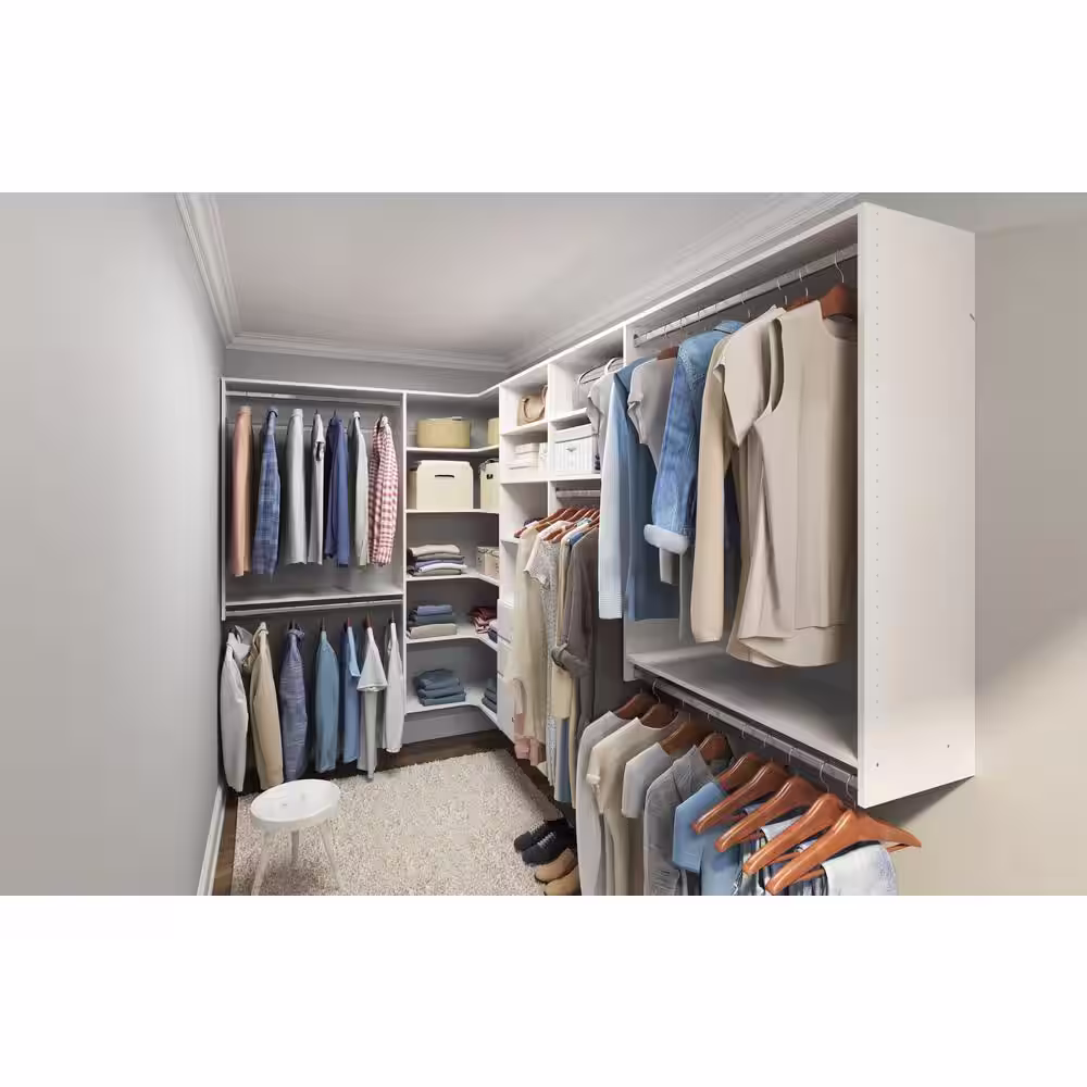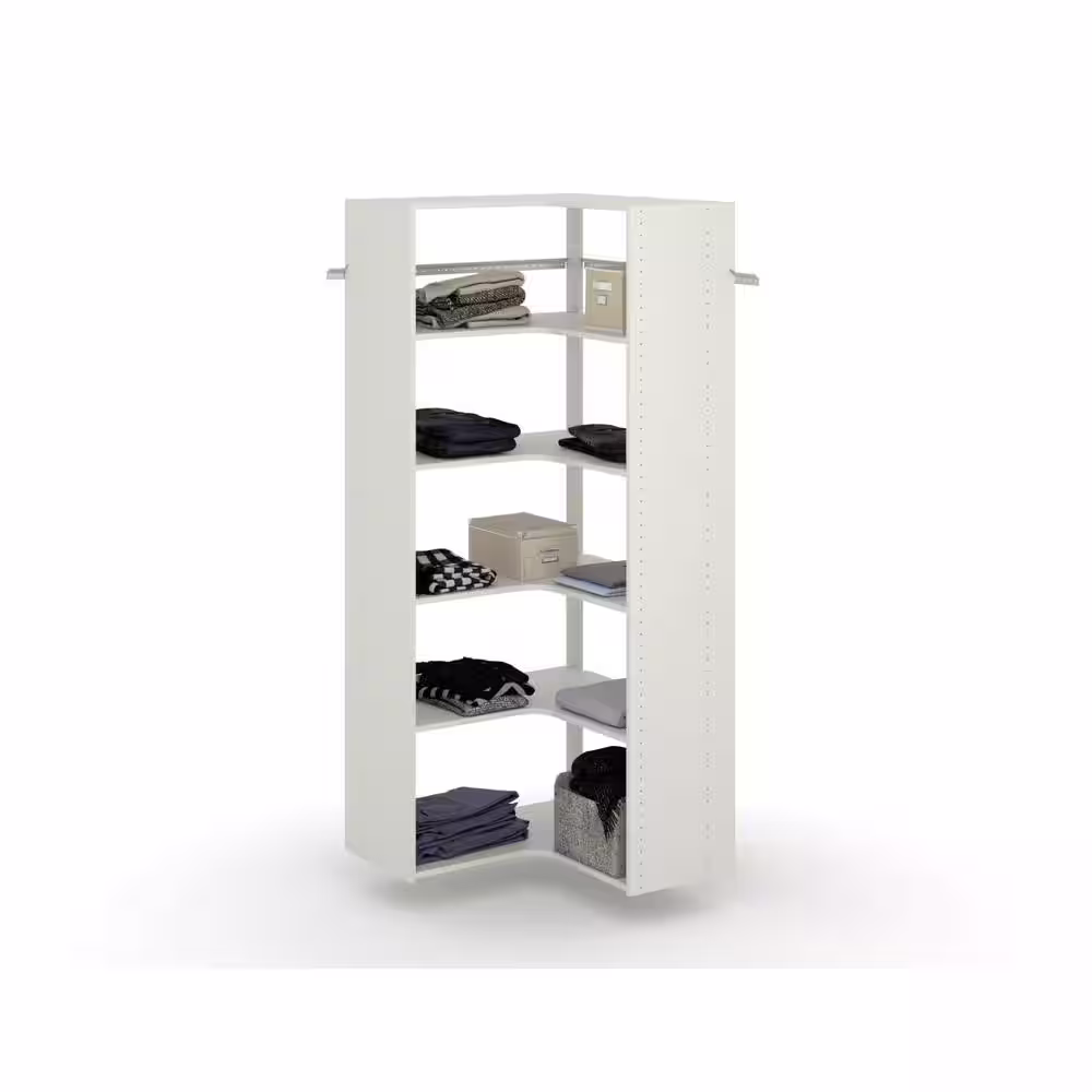 Closet Evolution 30 in. W White Corner Unit Wall Mount 6-Shelf Wood Closet System