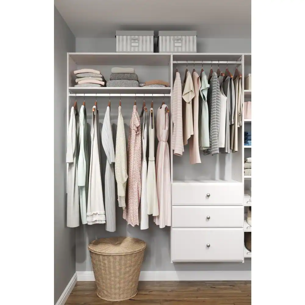 None Fiona 96 in. W White Freestanding Walk in Wood Closet System with Metal Frame