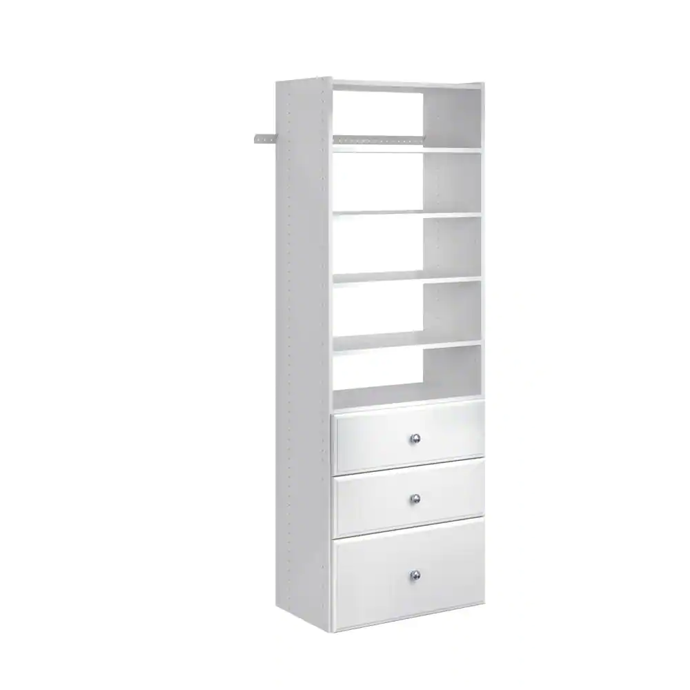 None Fiona 32 in. W White Freestanding Wood Closet System Tower with 3 Drawers