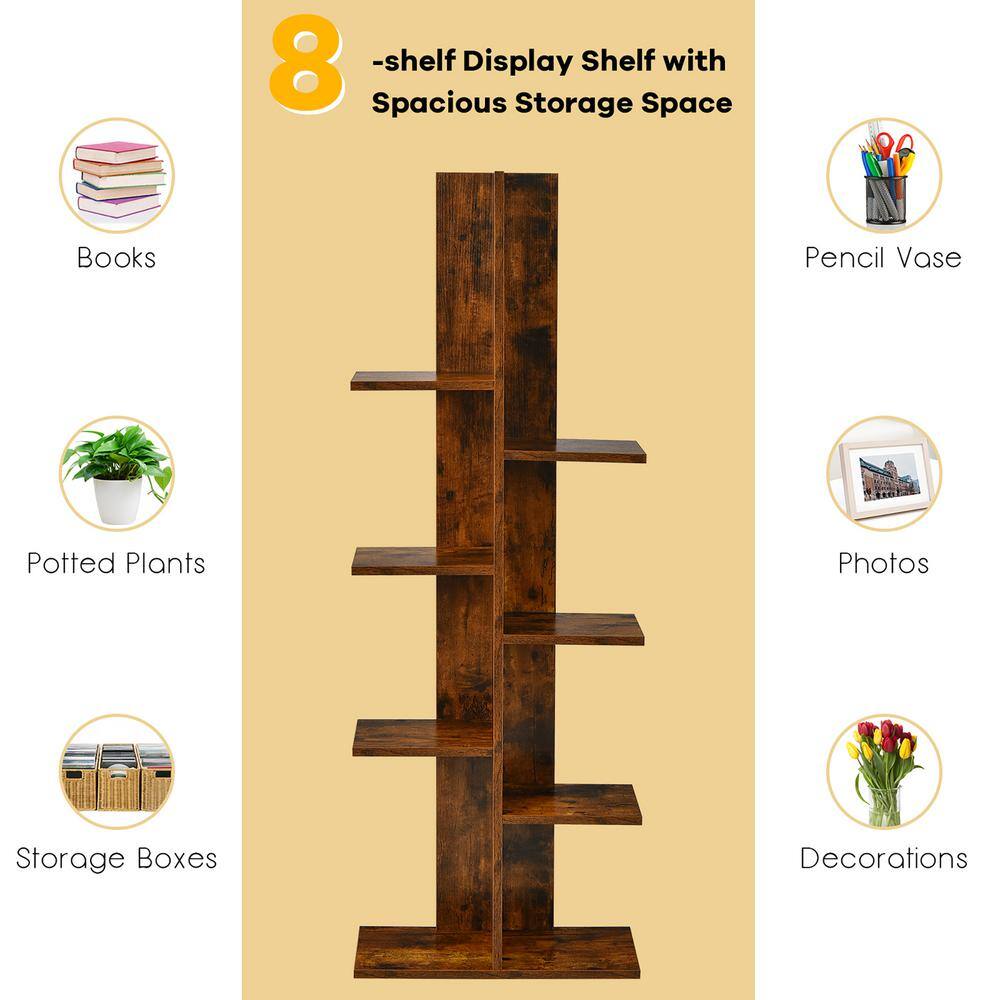 Costway 55.5 in. x 20 in. 8-Shelf Wood Bookcase Freestanding Tree Shelf Display Storage Stand