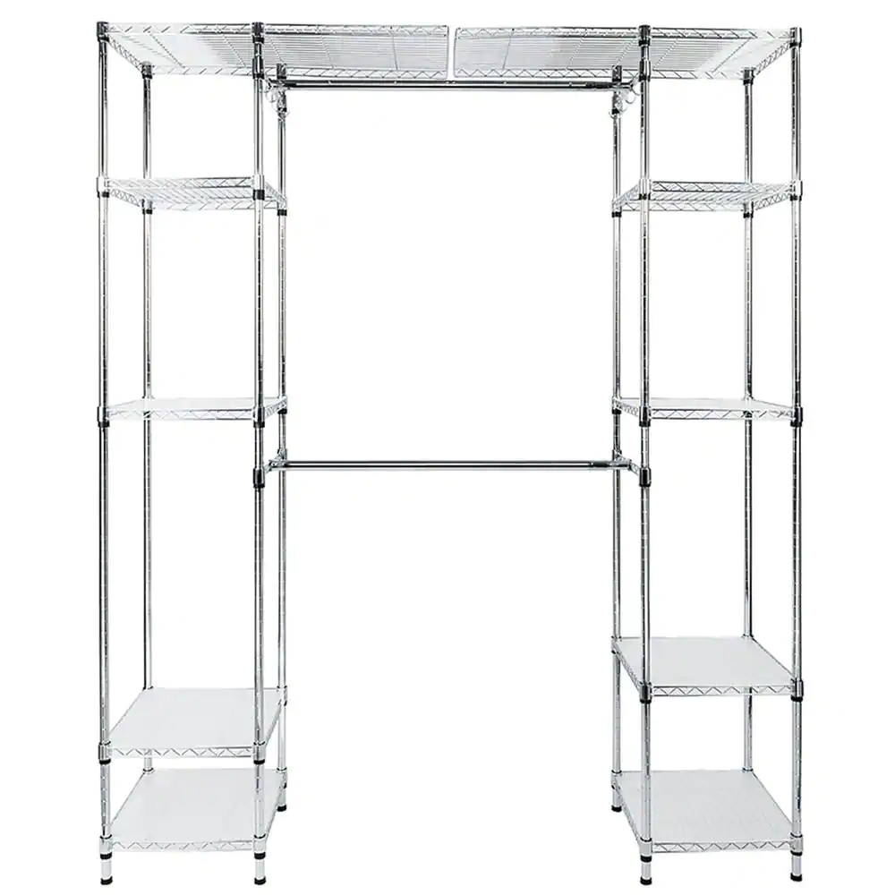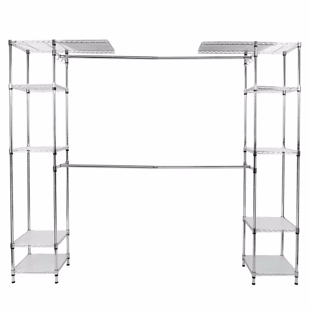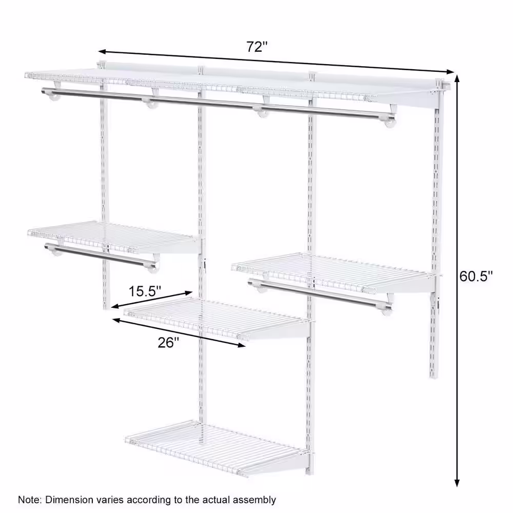 Boyel Living 72 in. W Adjustable Closet Organizer System White Wall Mounted Wire Closet System with Shelf