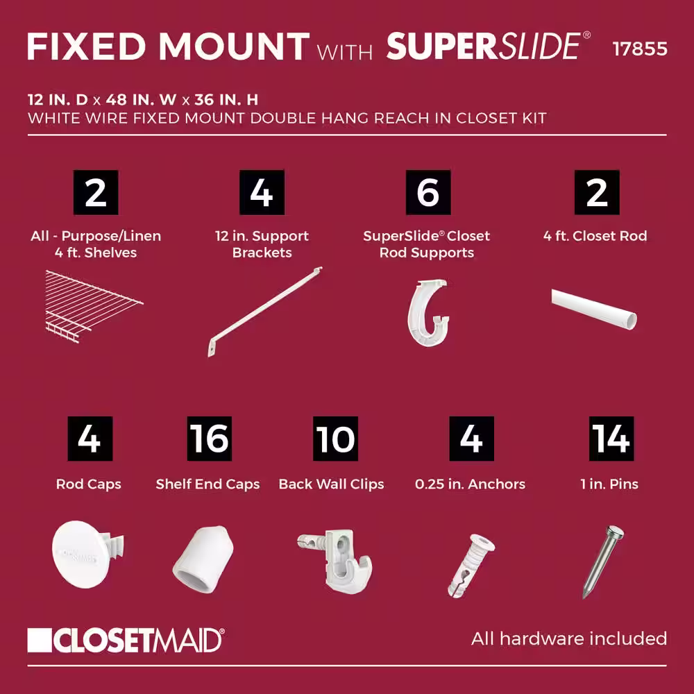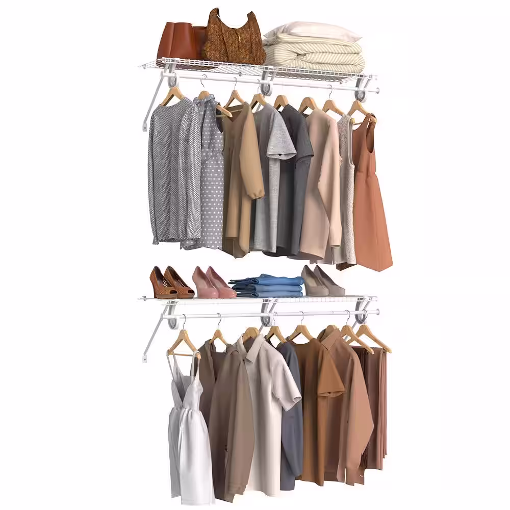 ClosetMaid Superslide 12 in. D x 48 in. W x 36 in. H White Wire Fixed Mount Double Hang Reach In Closet Kit