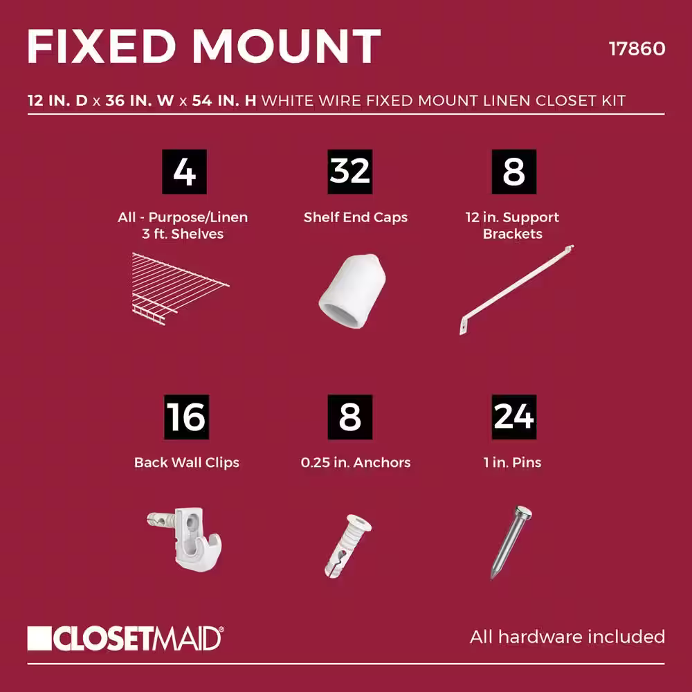 ClosetMaid 12 in. D x 36 in. W x 54 in. H White Wire Fixed Mount Linen Closet Kit