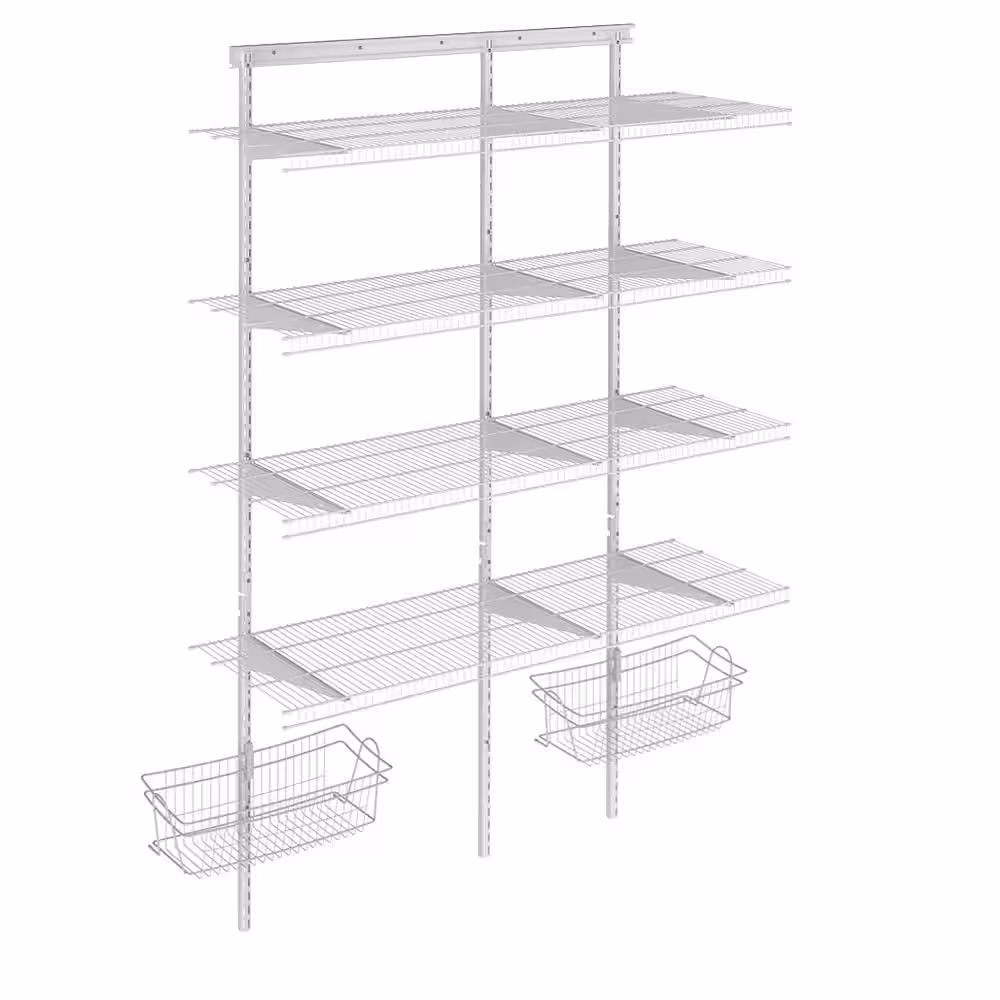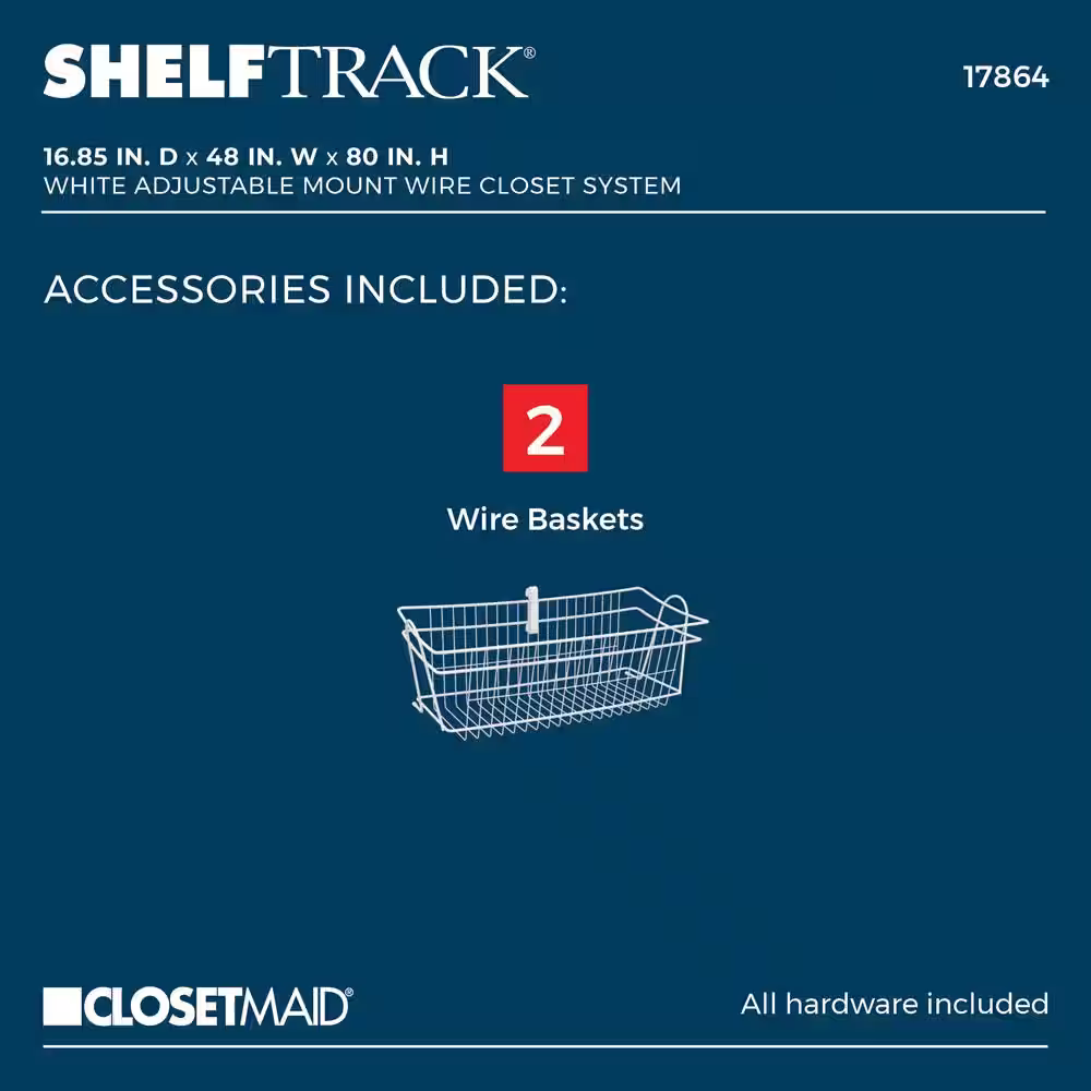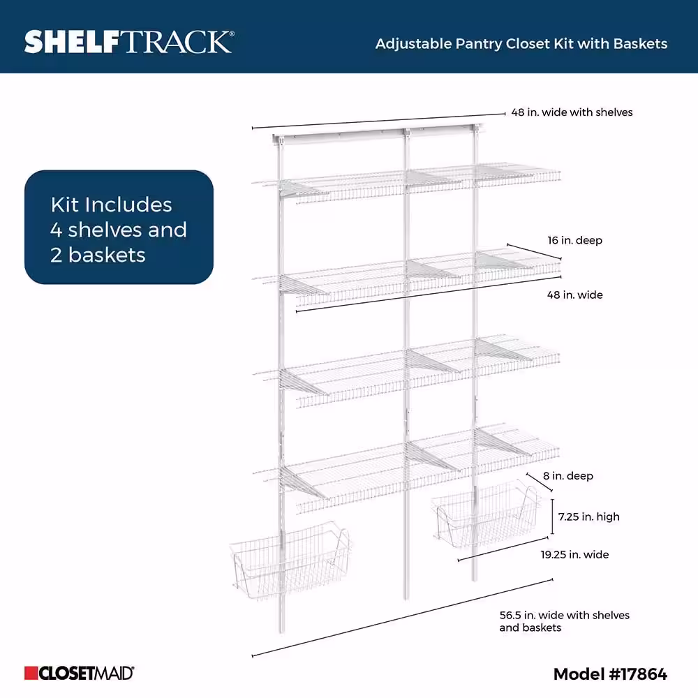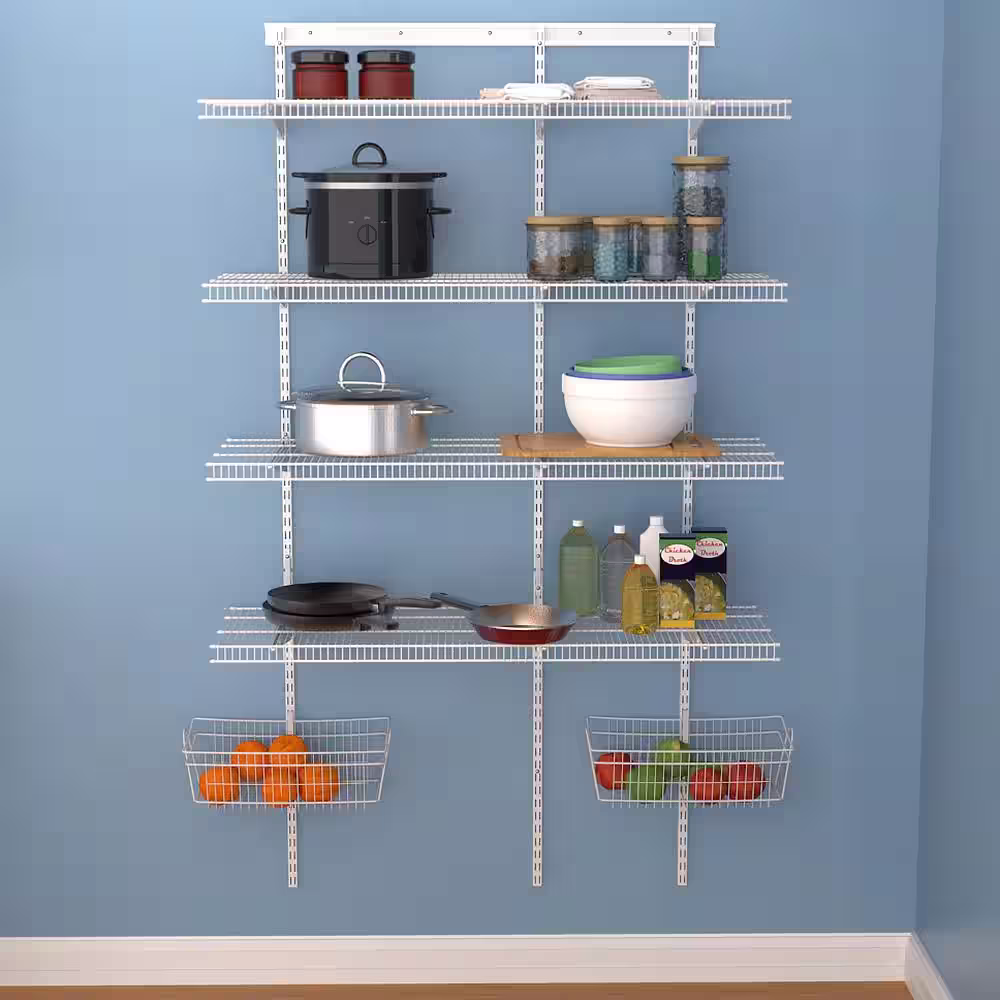ClosetMaid Shelftrack 16.75 in. D x 48 in. W x 84 in. H White Wire Adjustable Pantry Closet Kit with Baskets