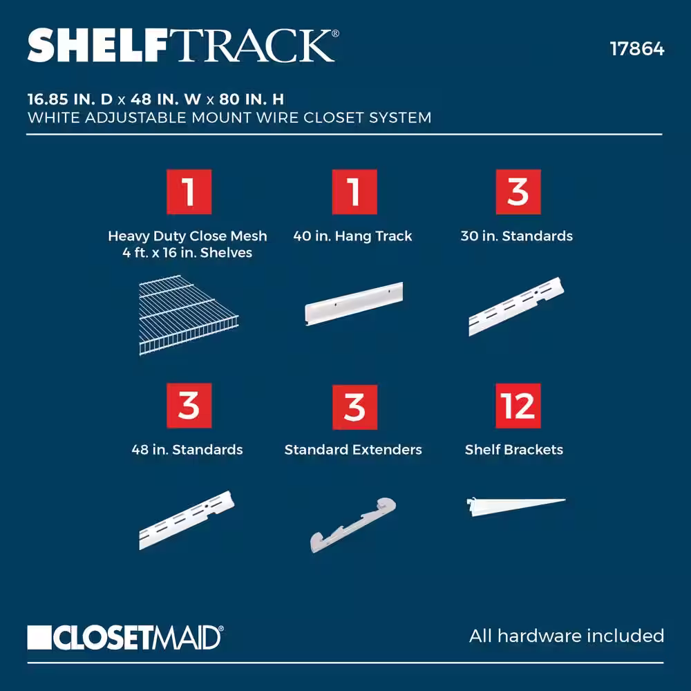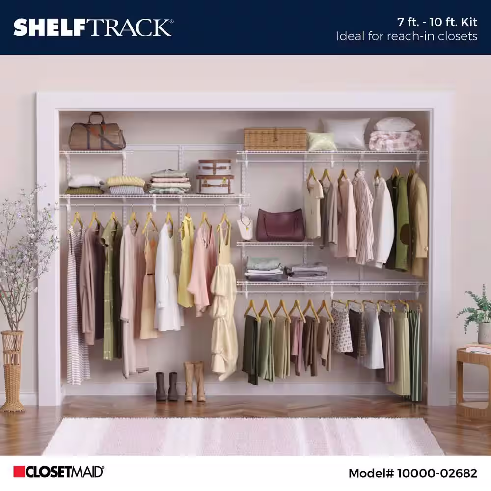 ClosetMaid ShelfTrack 72 in. W White Reach-In Wall Mount 3-Shelf Wire Closet System Organizer Kit