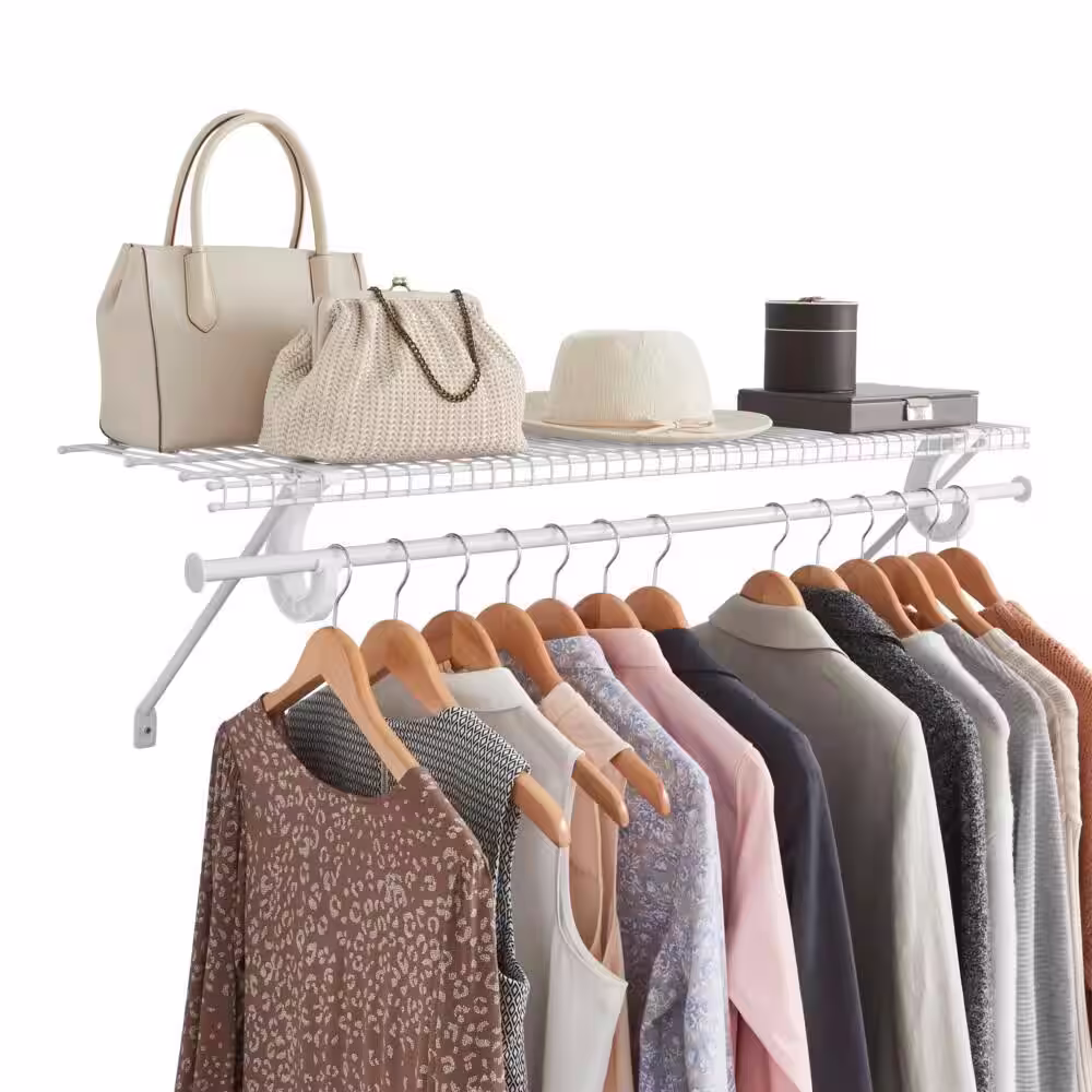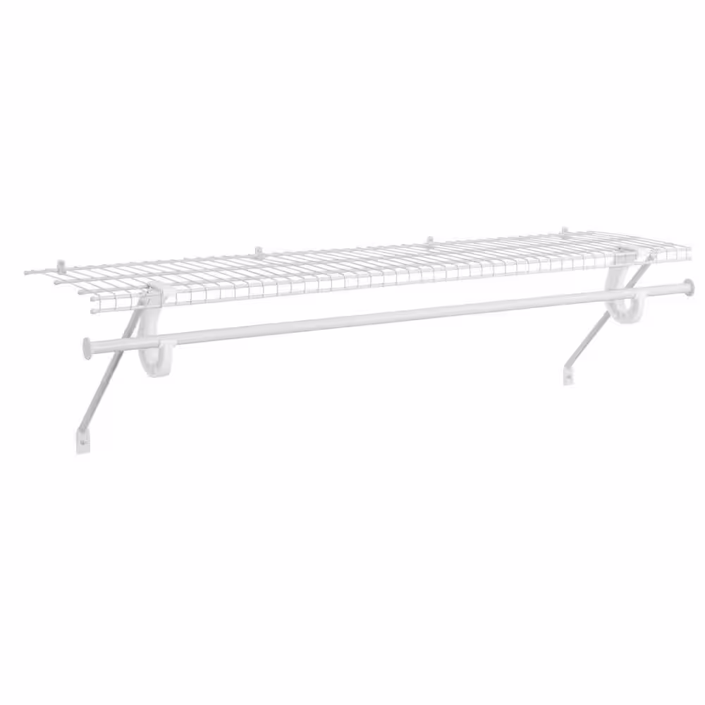 Everbilt 48 in. W to 48.82 in. W x 12 in. White Fixed Mount Kit with Closet Rod Adjustable Wire Closet System