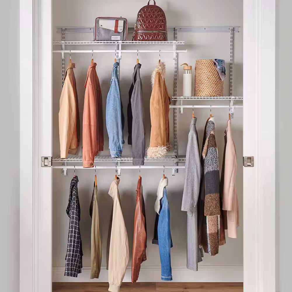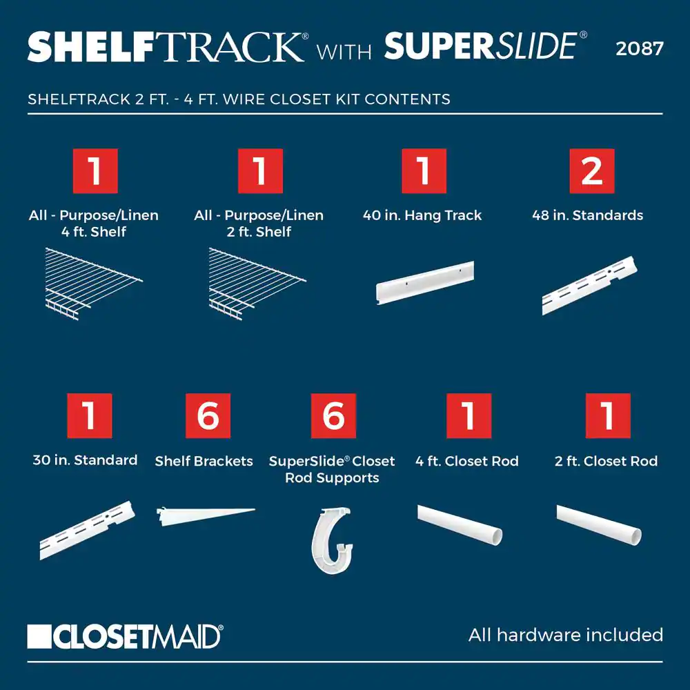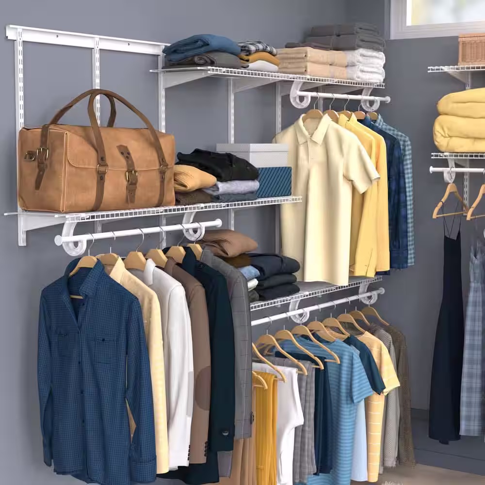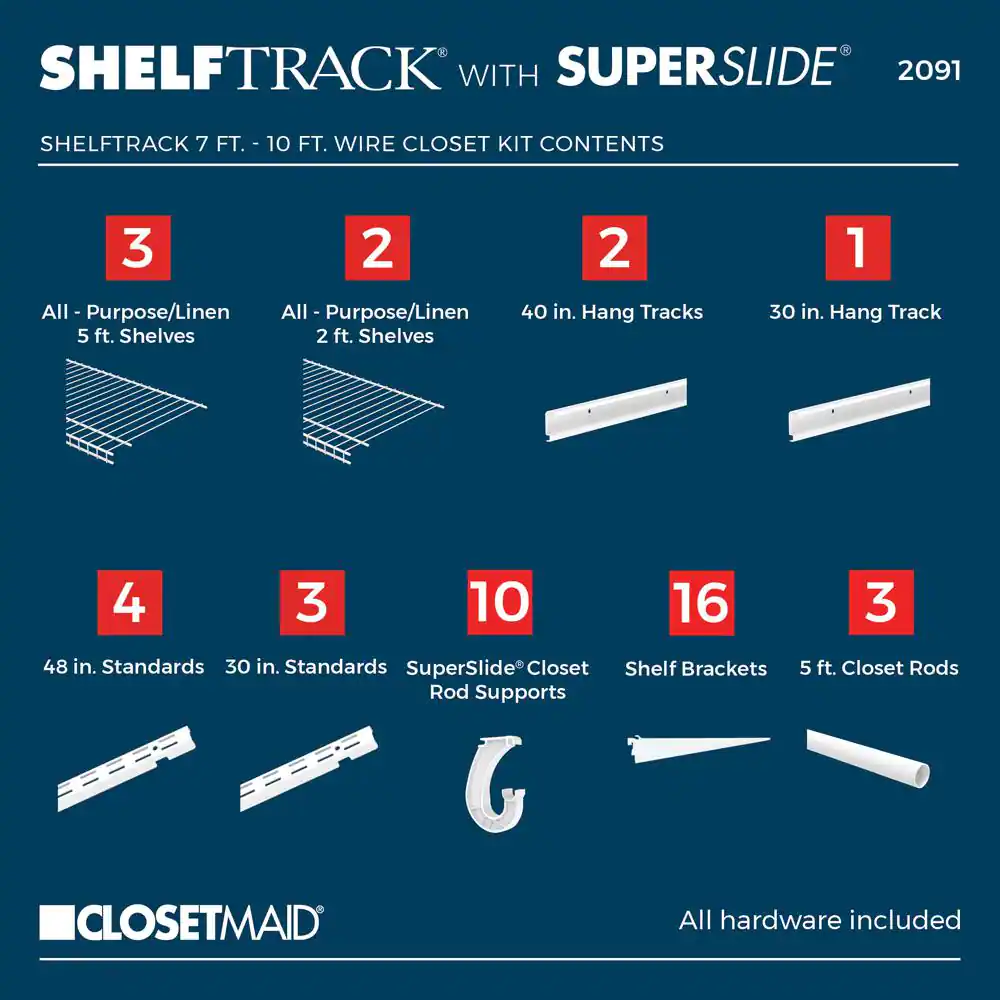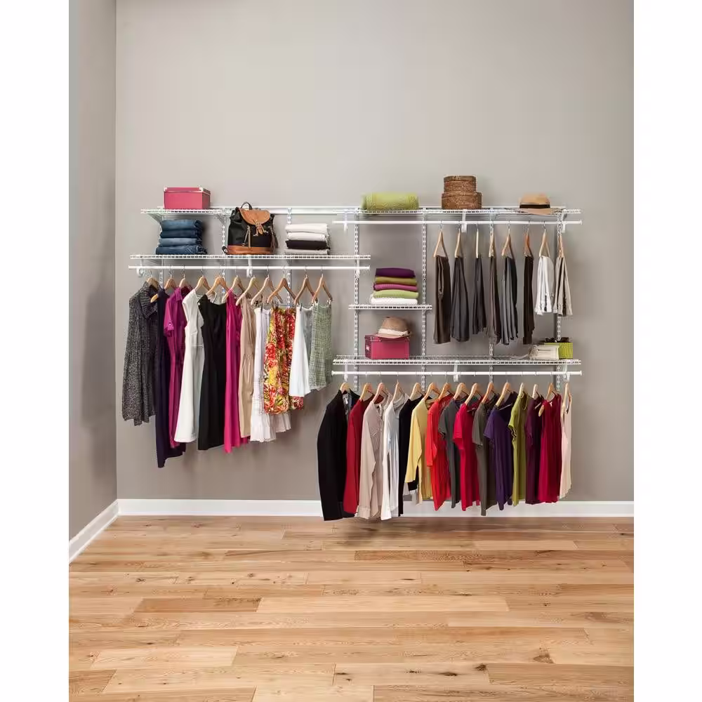ClosetMaid SuperSlide 5 ft. - 8 ft. 13 in. D x 96 in. W x 96 in. H Metal White Steel Closet System Organizer Kit