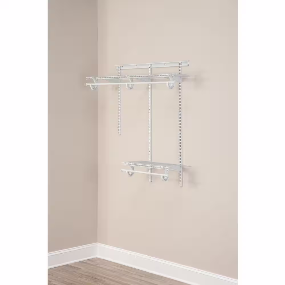 ClosetMaid ShelfTrack 48 in. W White Reach-In Wall Mount 2-Shelf Wire Closet System Organizer Kit