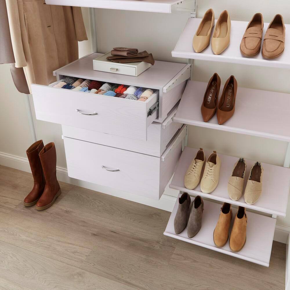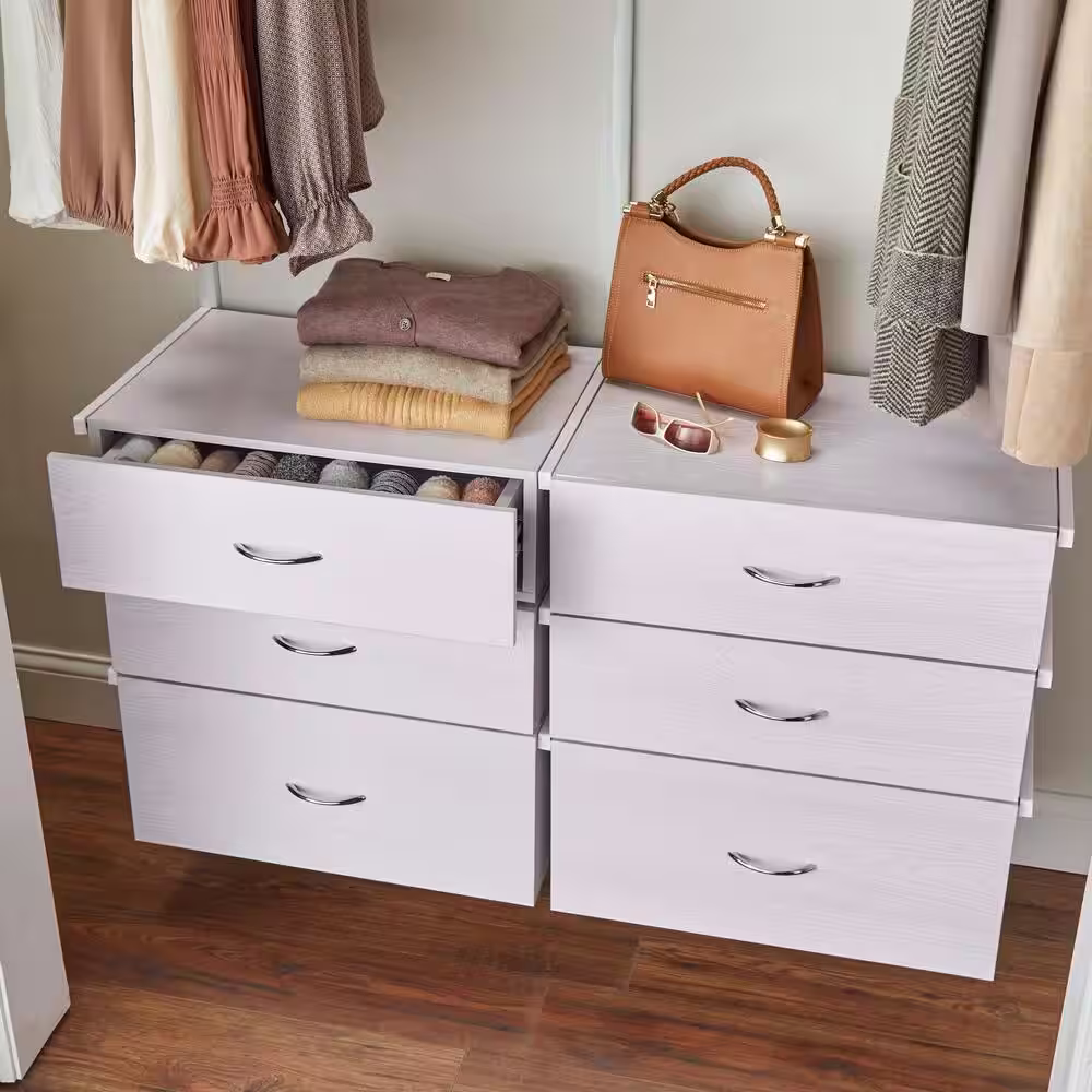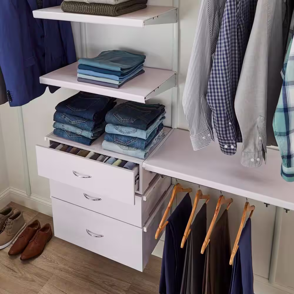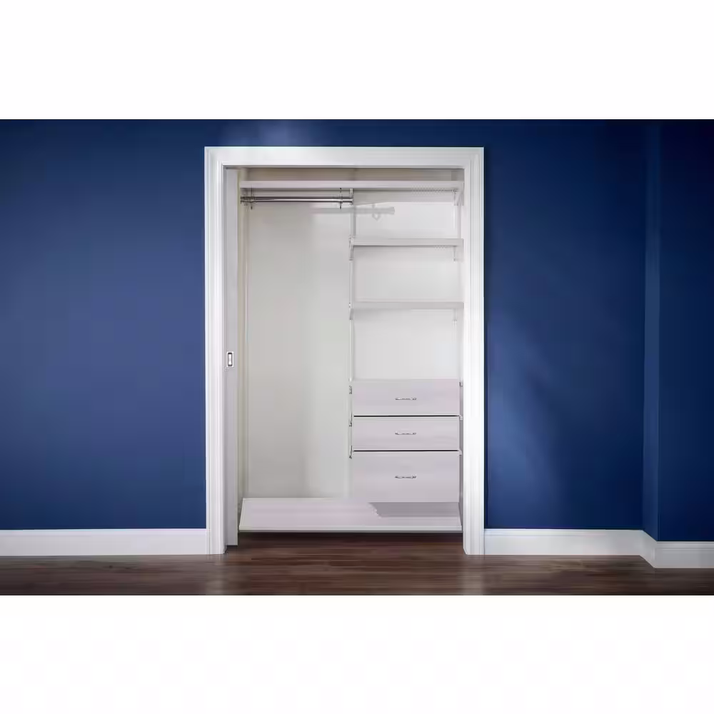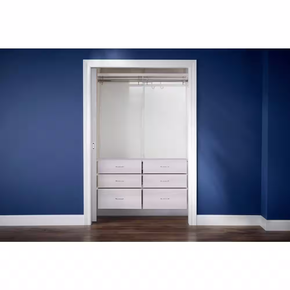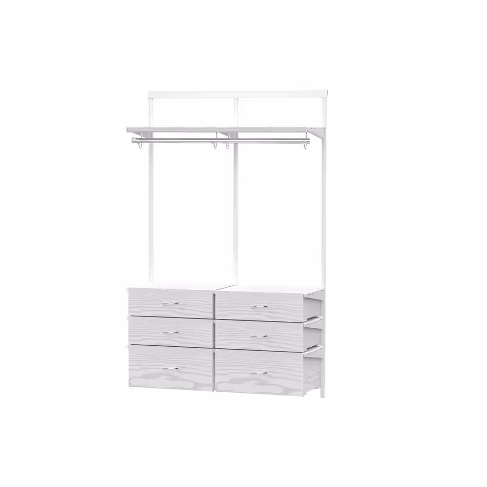 Everbilt Genevieve 4 ft. White Adjustable Closet Organizer with Long Hanging Rod and 6 Drawers