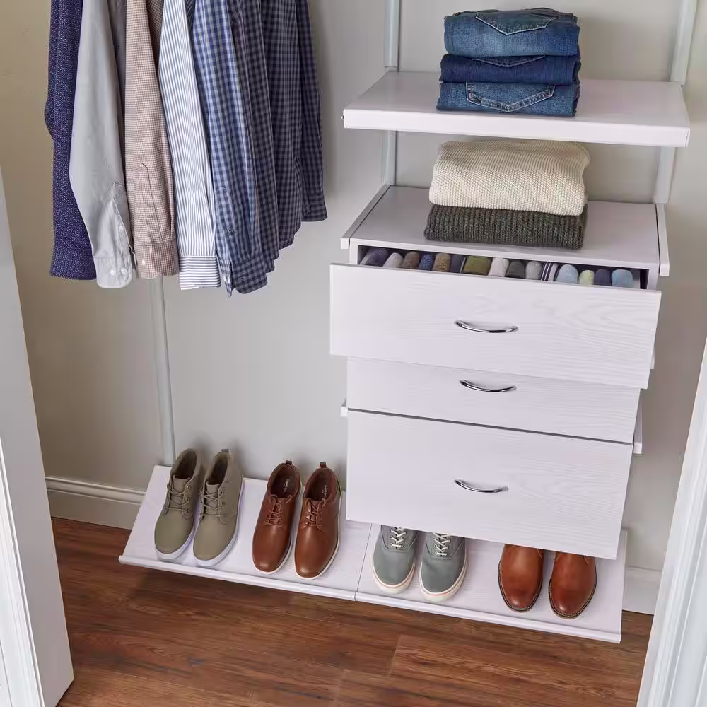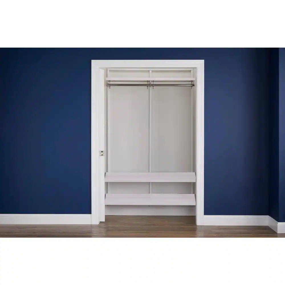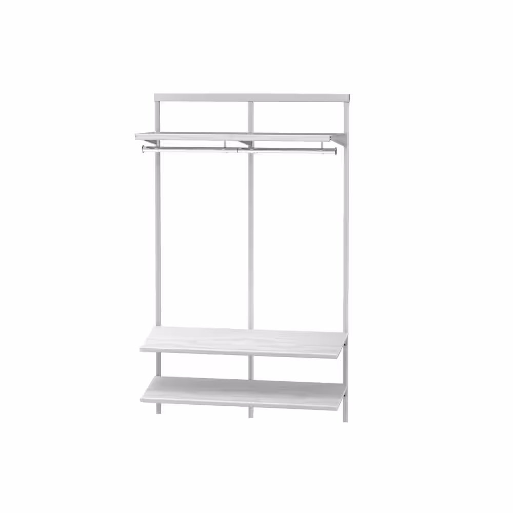 Everbilt Genevieve 4 ft. White Adjustable Closet Organizer Long Hanging Rod with 2 Shoe Racks