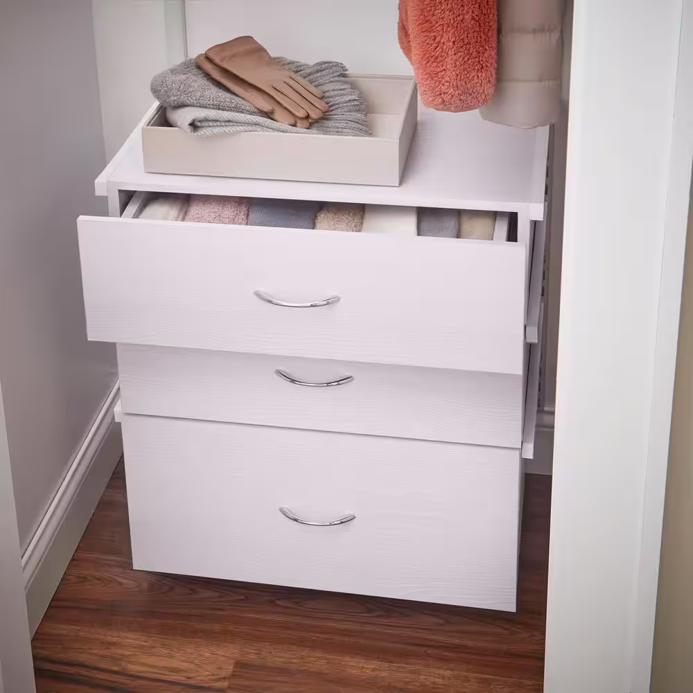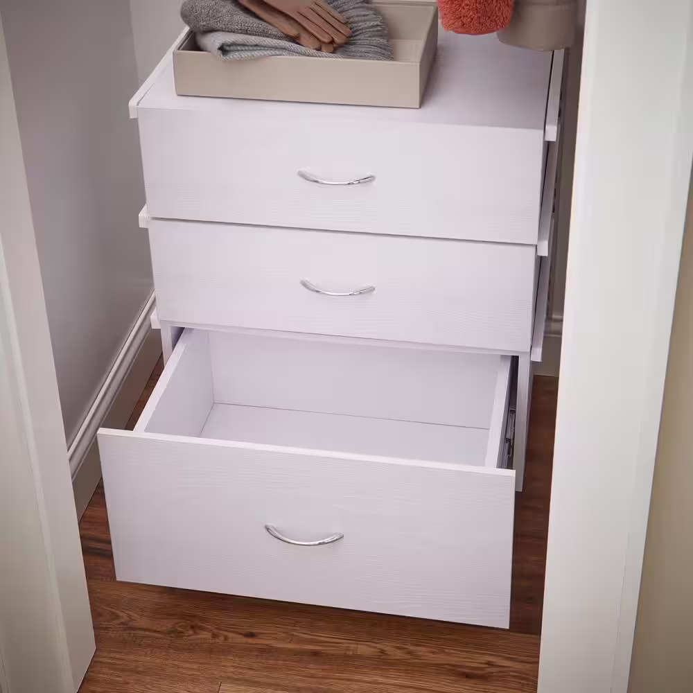 Everbilt Genevieve 2 ft. Birch Adjustable Closet Organizer Hanging Rod with 3 Drawers