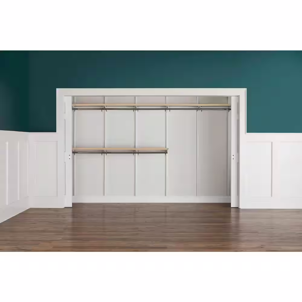 Everbilt Genevieve 10 ft. Birch Adjustable Closet Organizer Double and Long Hanging Rods