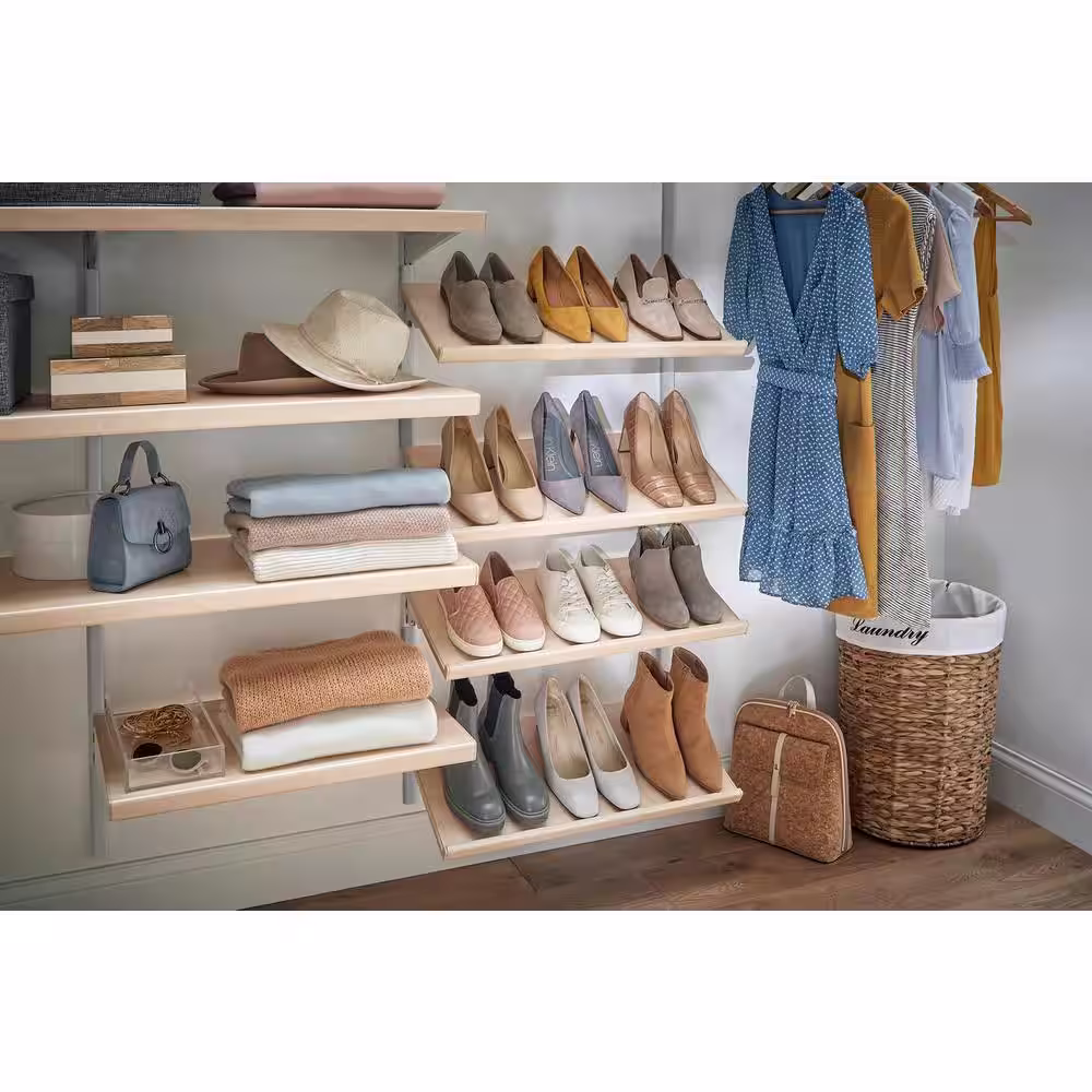 Everbilt Genevieve 6 ft. Birch Adjustable Closet Organizer Double Long Hanging Rods with Shoe Rack and 6 Shelves