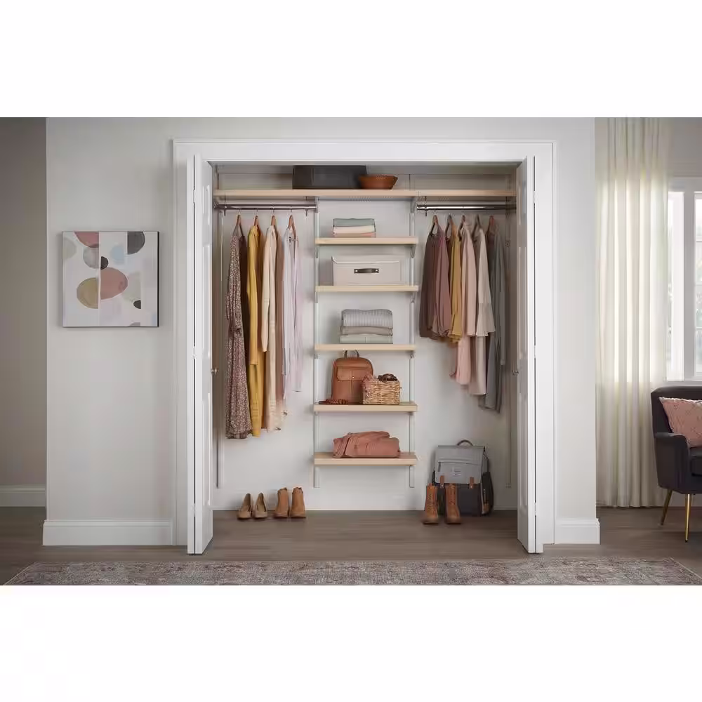 Everbilt Genevieve 8 ft. Birch Adjustable Closet Organizer Double and Long Hanging Rods