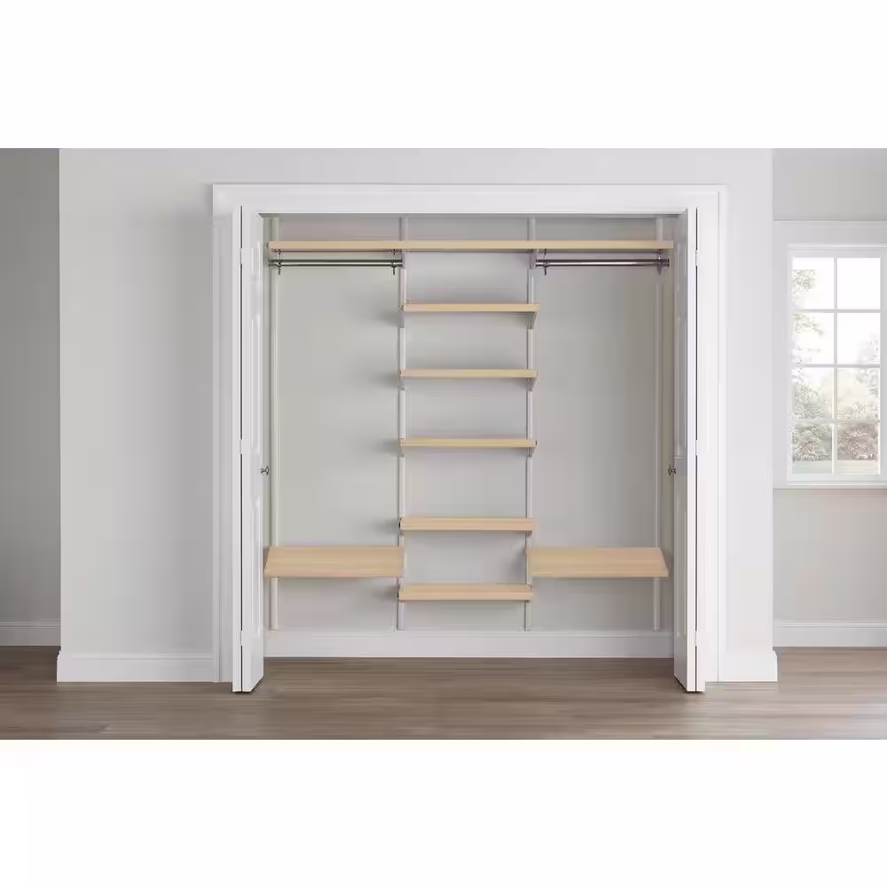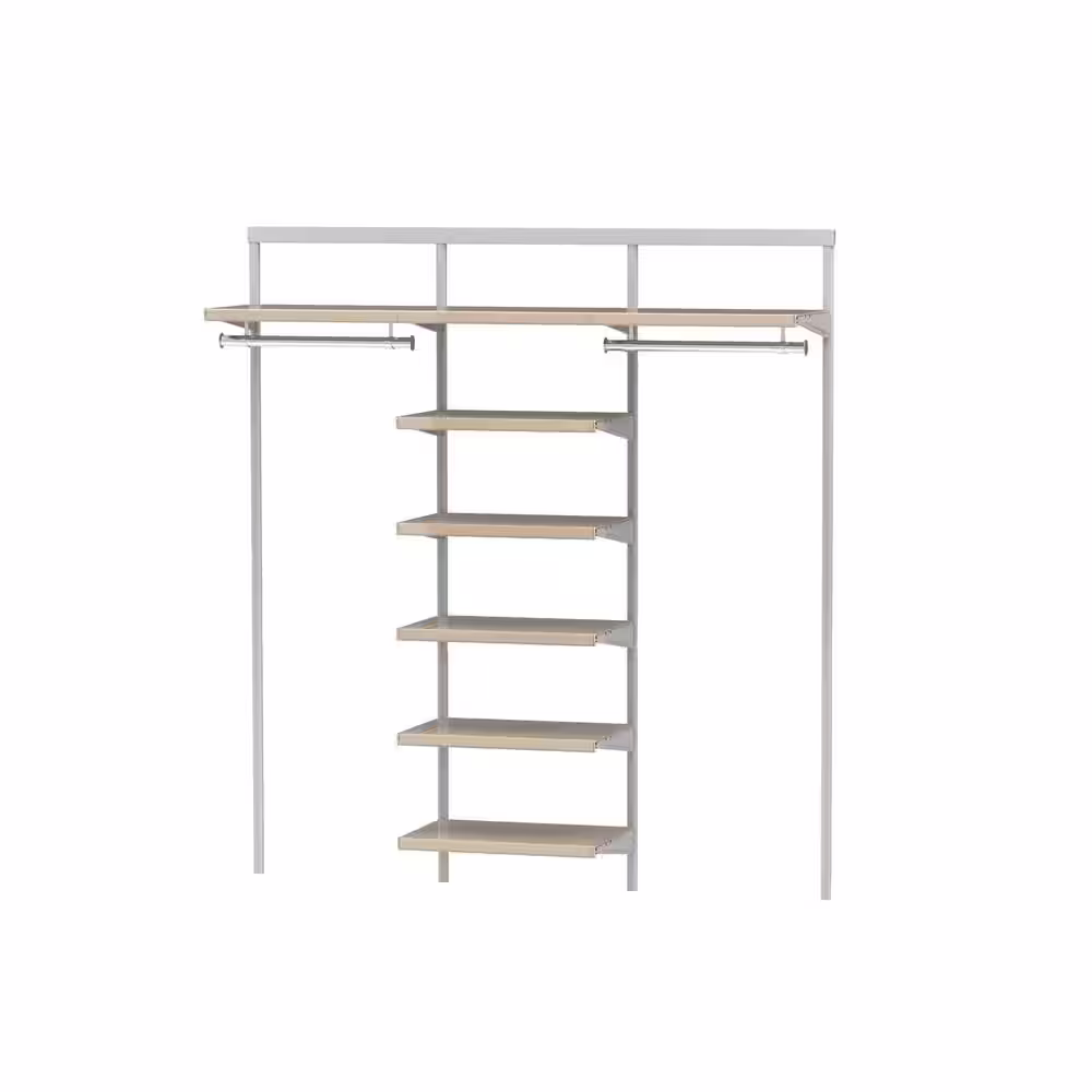 Everbilt Genevieve 6 ft. Birch Adjustable Closet Organizer Double Long Hanging Rods with 6 Shelves