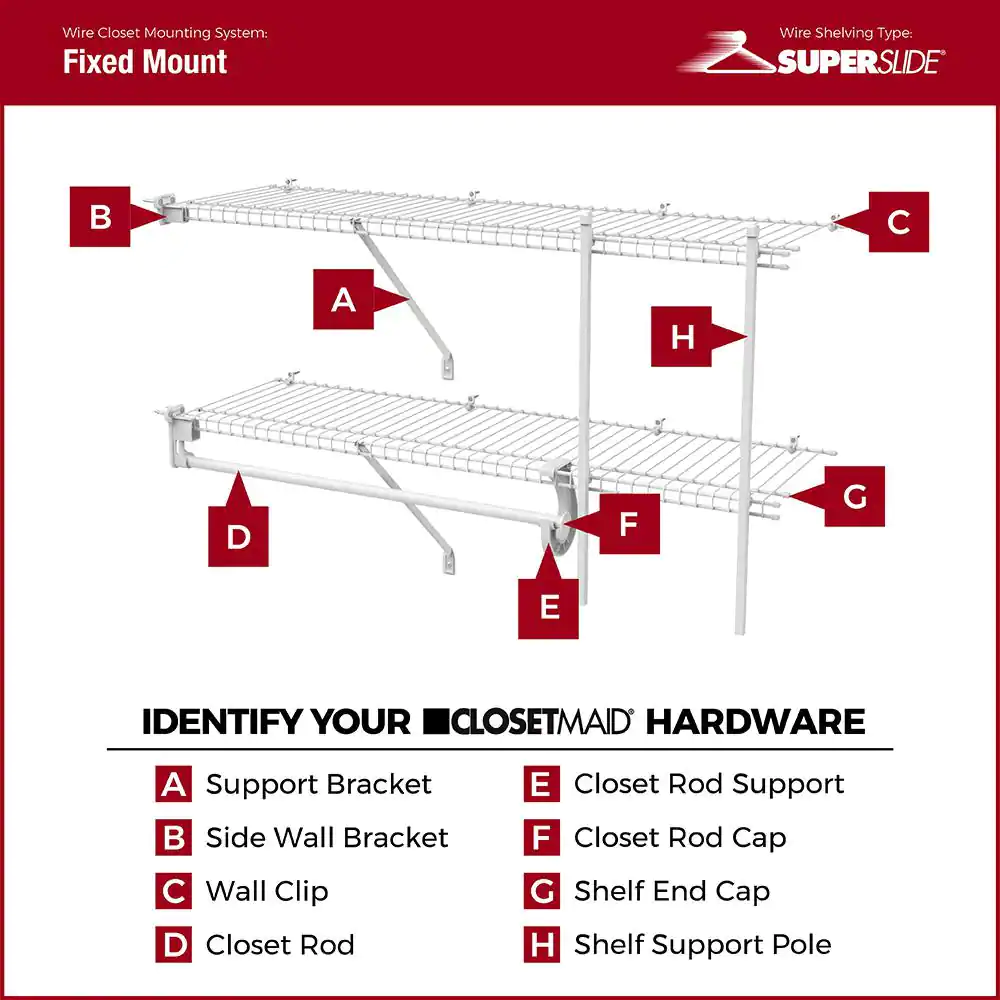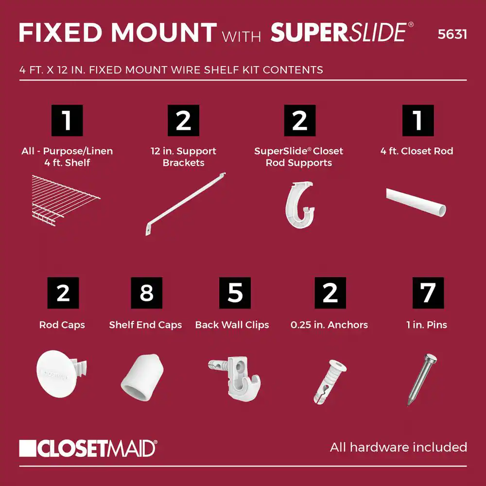 ClosetMaid SuperSlide 48 in. W x 12 in. D White Steel Wire Closet Shelf with Closet Rod