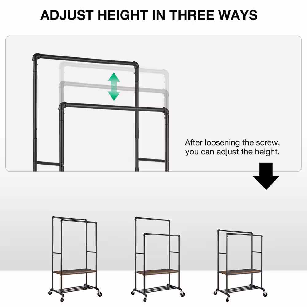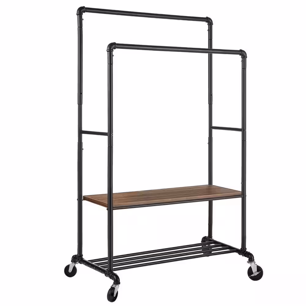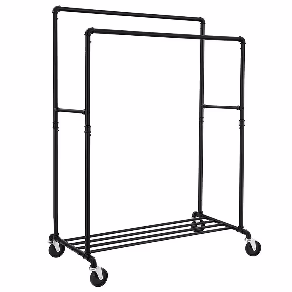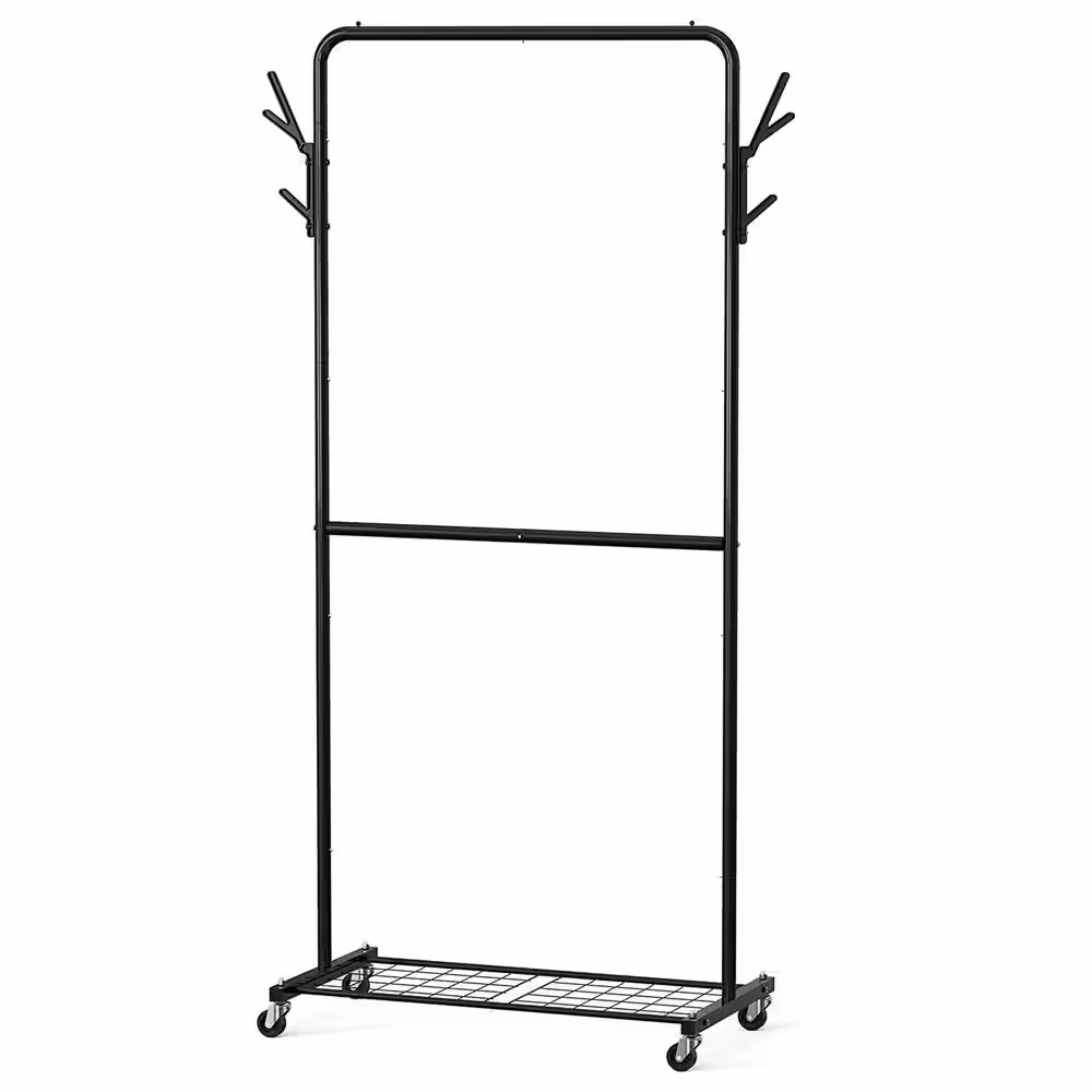 None Black Metal Garment Clothes Rack Double Rods 39 in. W x 63 in. H