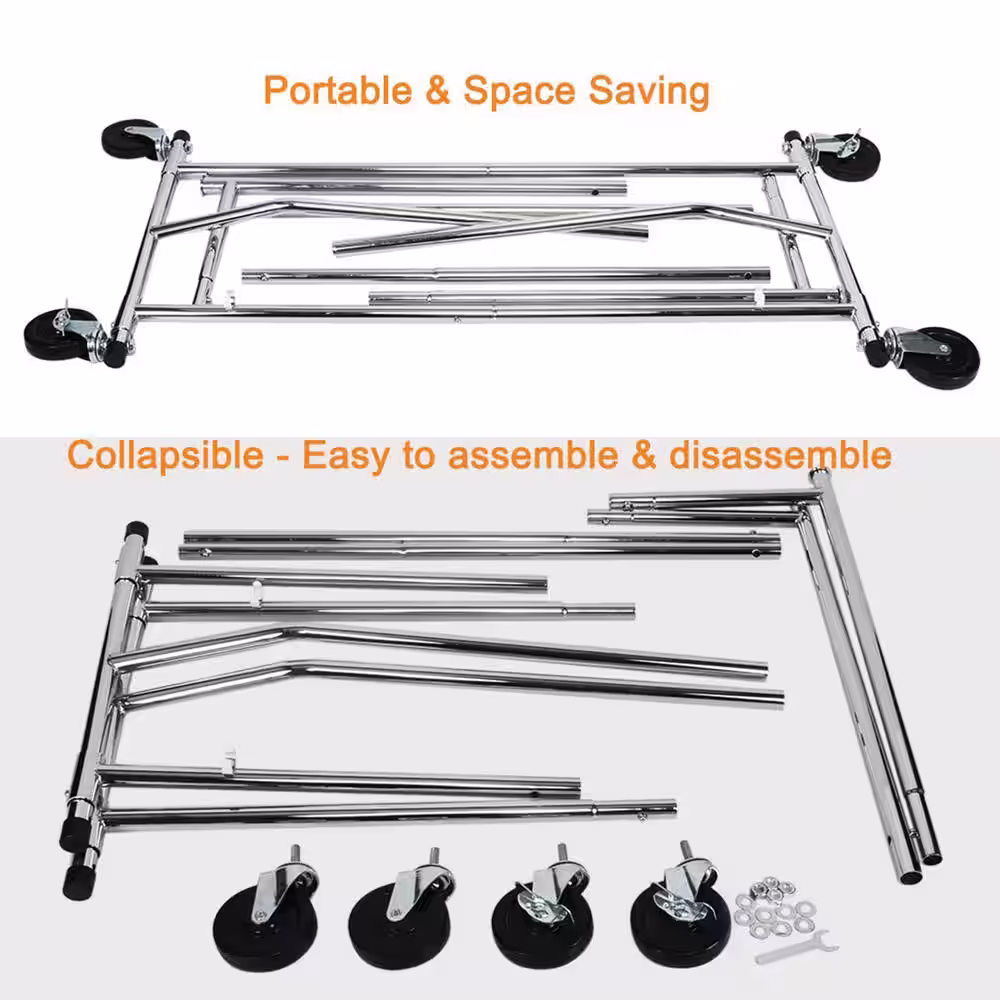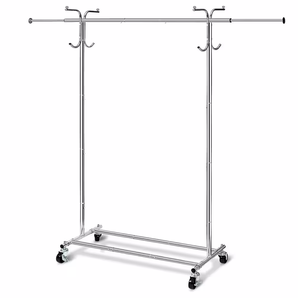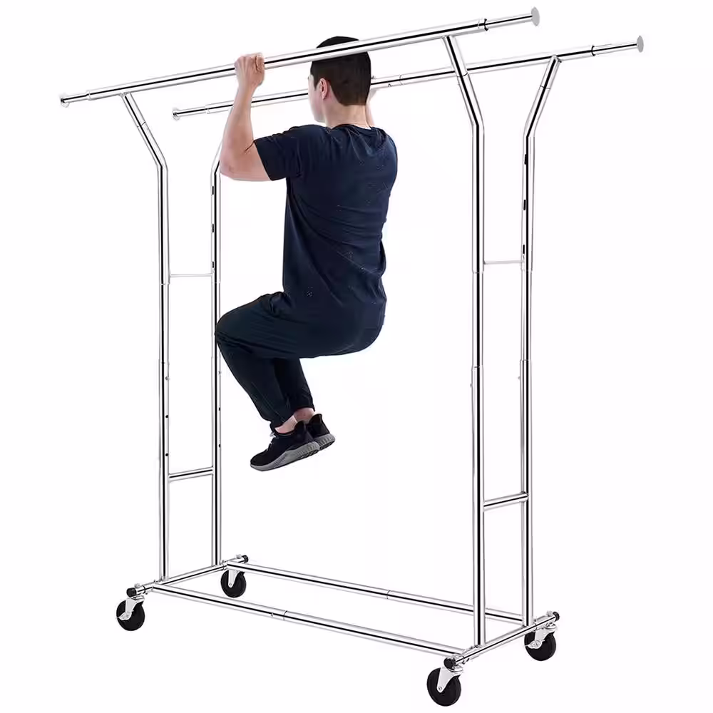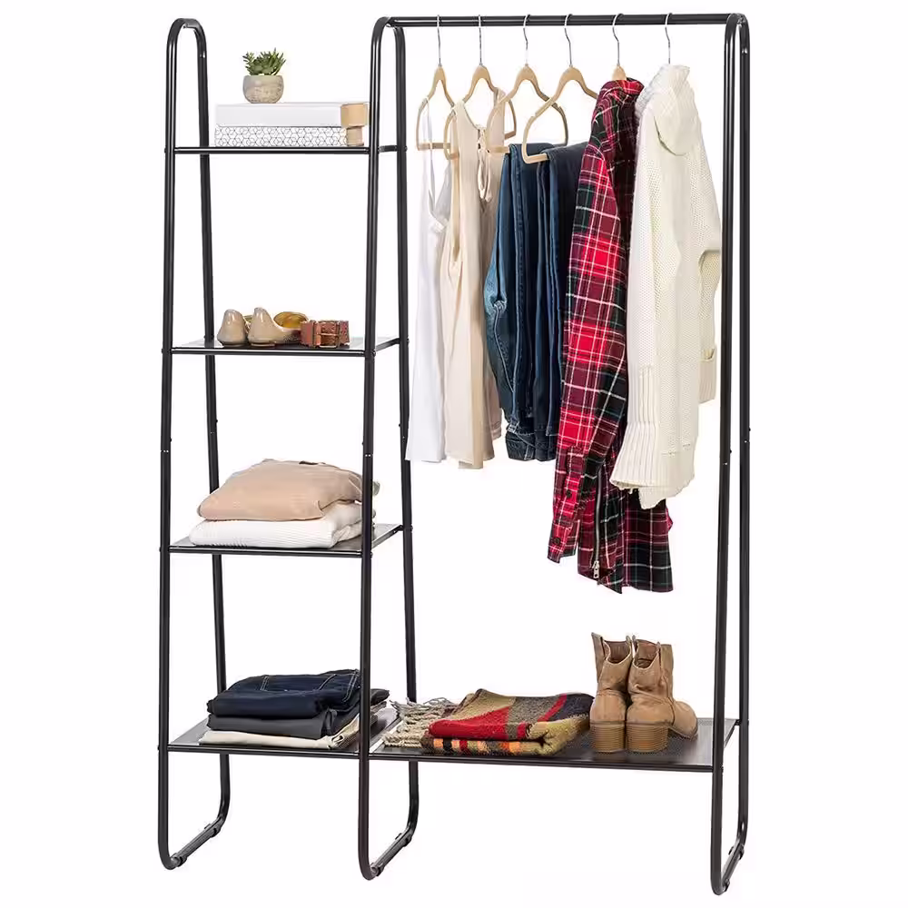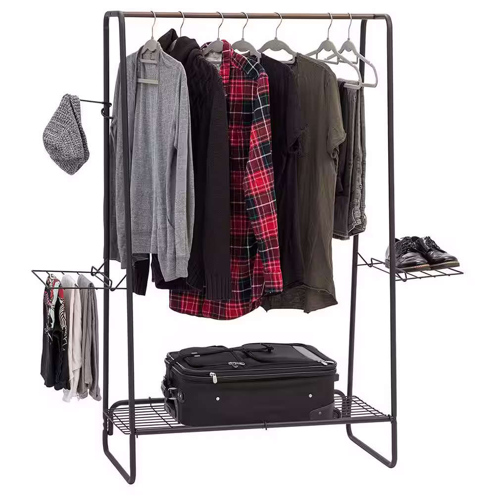 None Black Metal Garment Clothes Rack Double Rods 39 in. W x 63 in. H