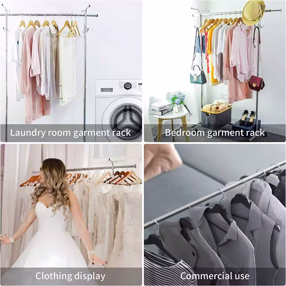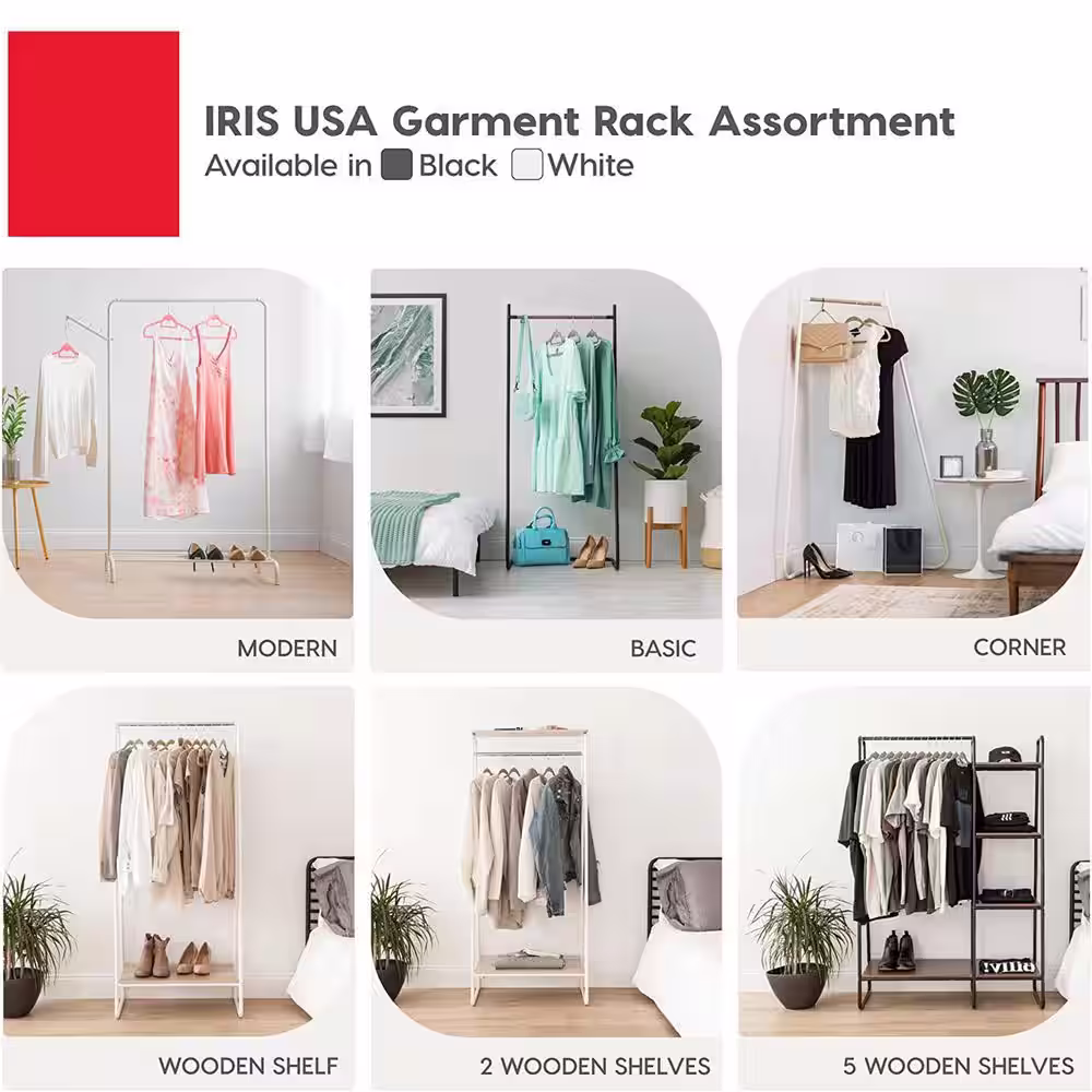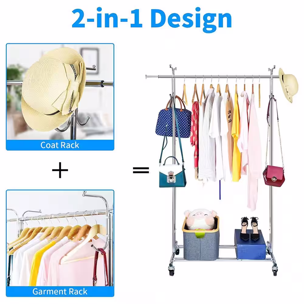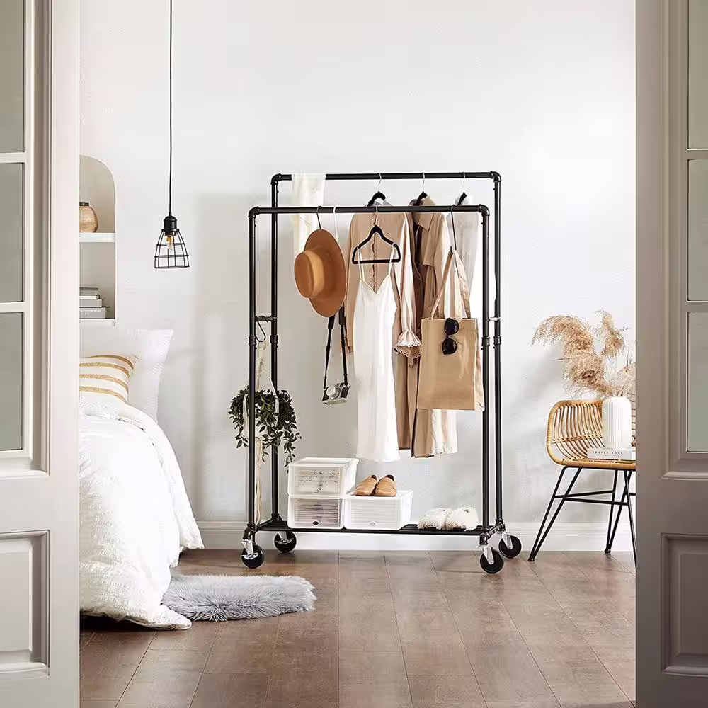 None Black Metal Garment Clothes Rack Double Rods 39 in. W x 63 in. H