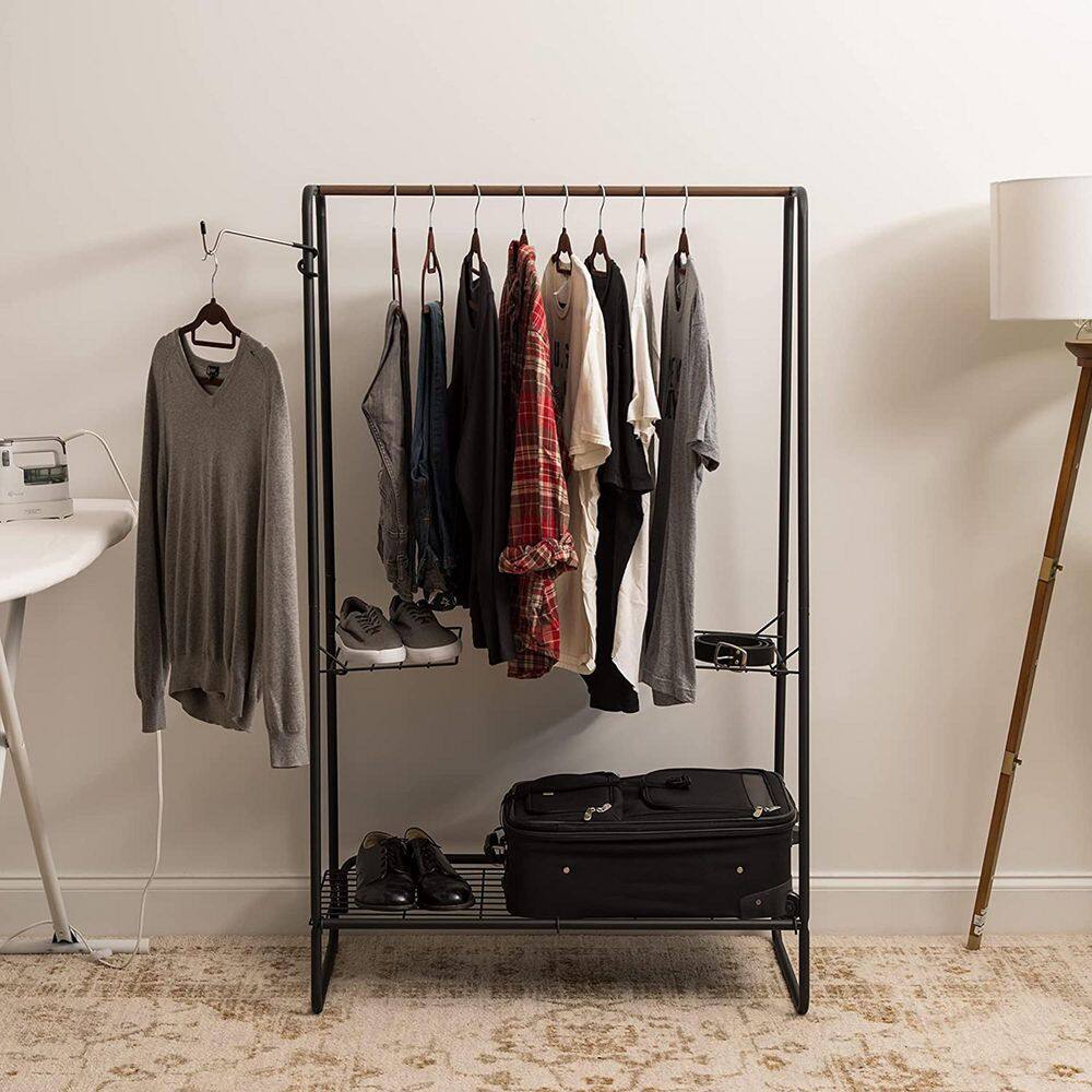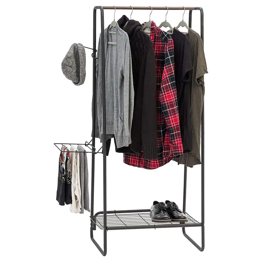 None Black Metal Garment Clothes Rack With Double Rod 39 in. W x 71 in. H