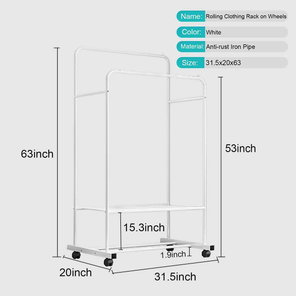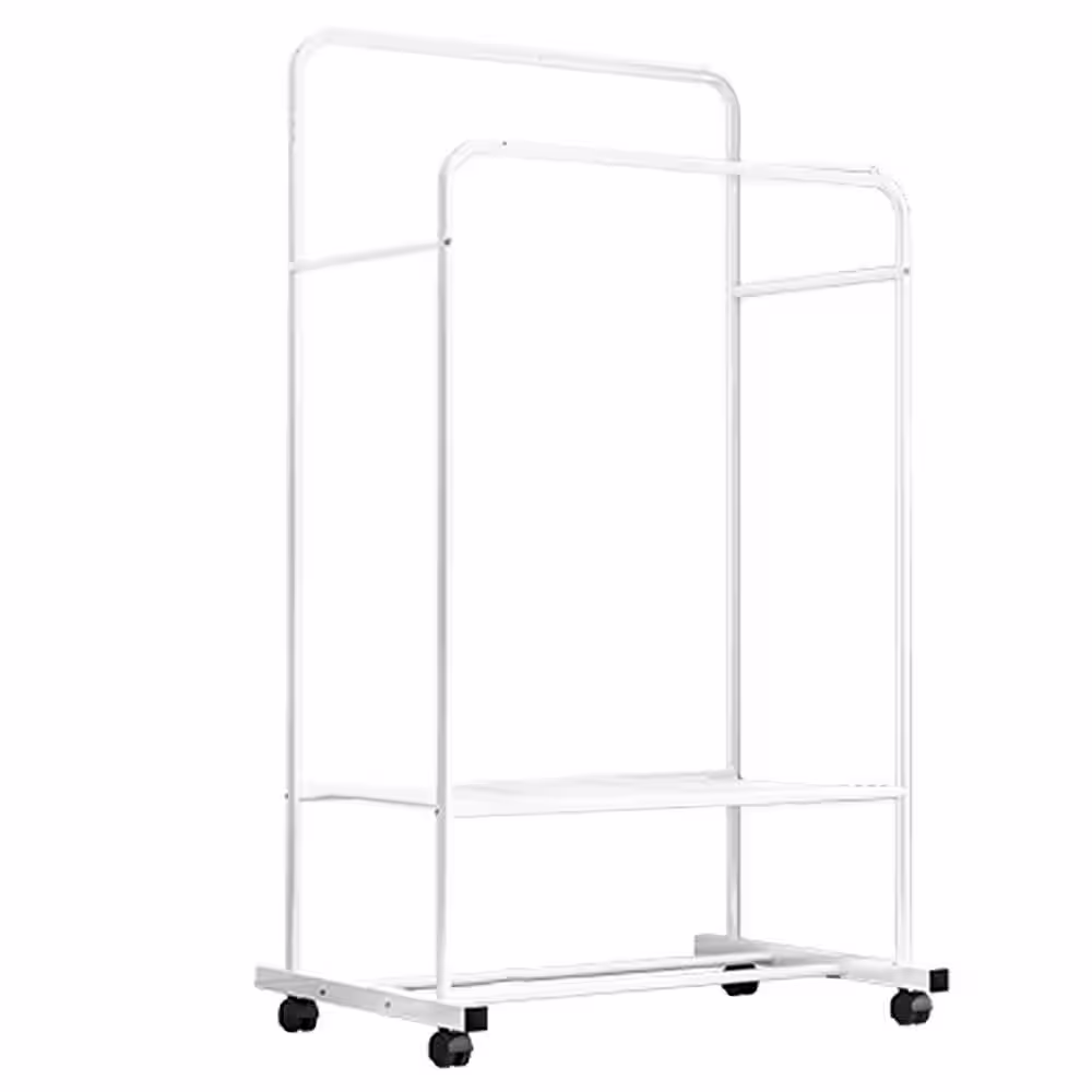 None White Metal Garment Clothes Rack Double Rods 31.5 in. W x 63 in. H