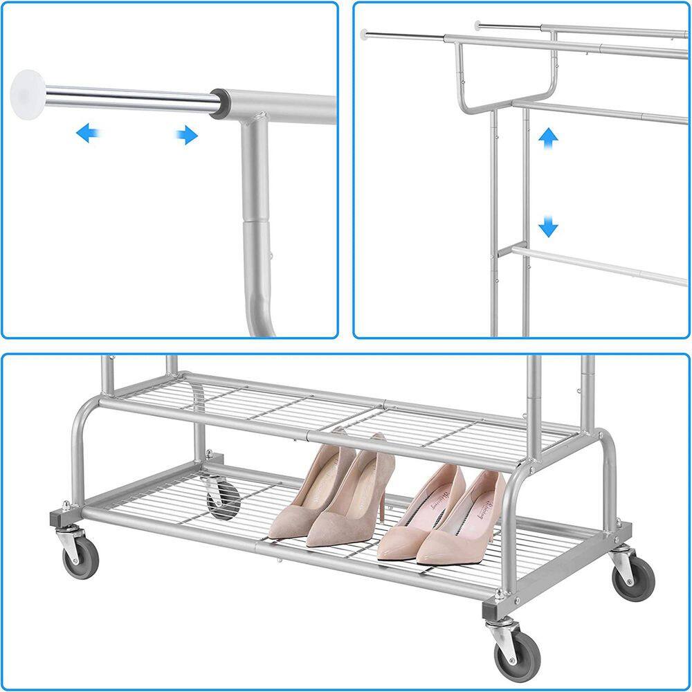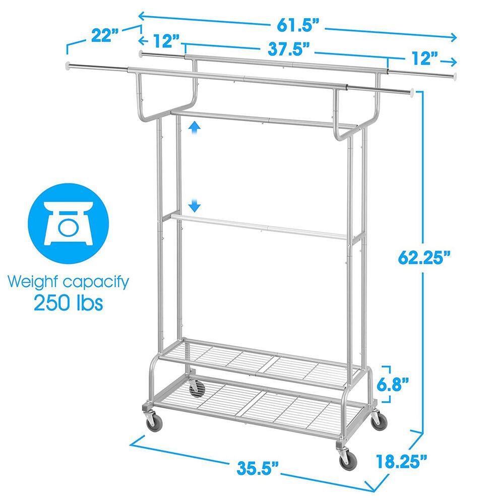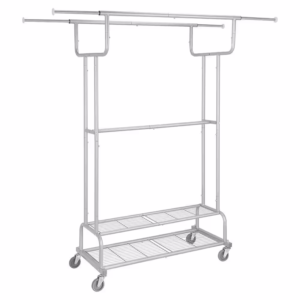 None Silver Metal Garment Clothes Rack With Double Rod 38 in. W x 62 in. H