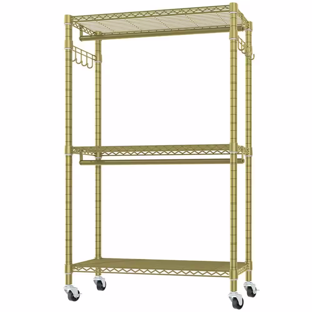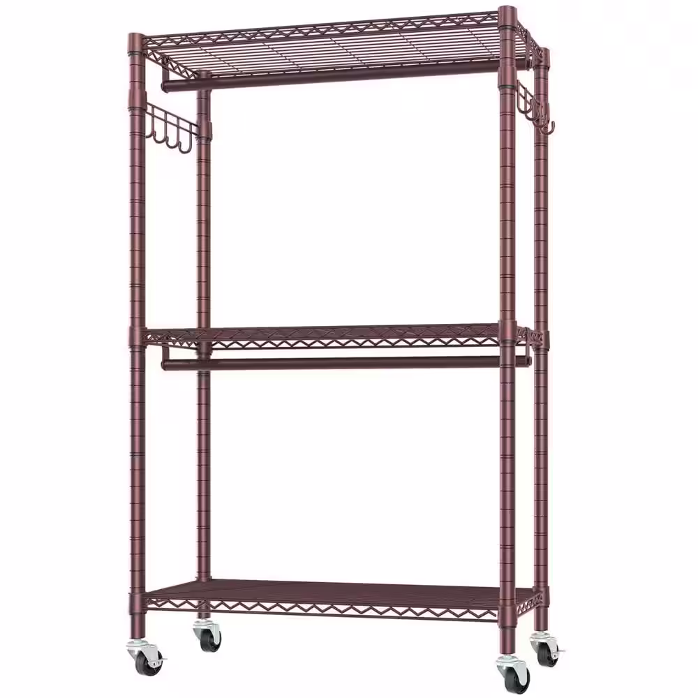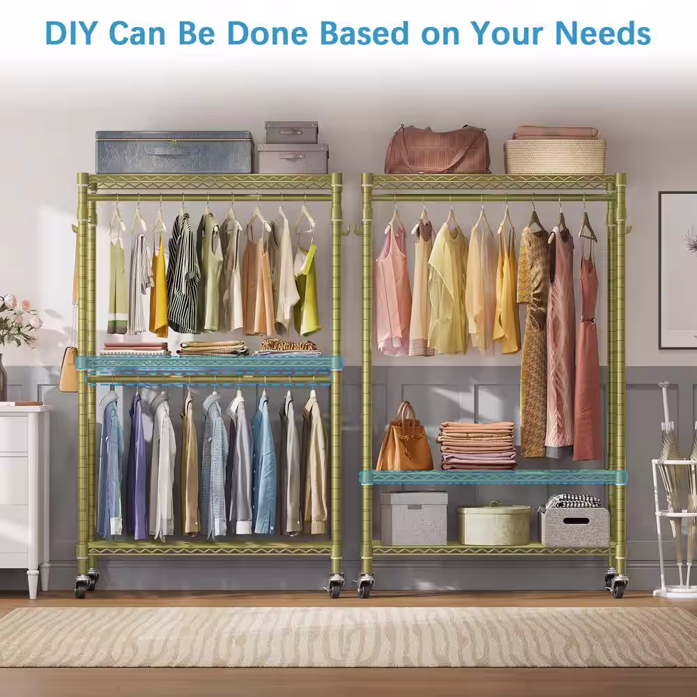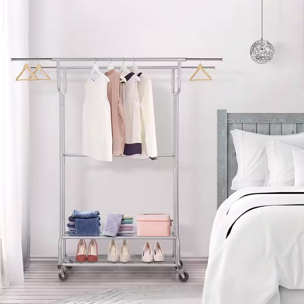 None Silver Metal Garment Clothes Rack With Double Rod 38 in. W x 62 in. H