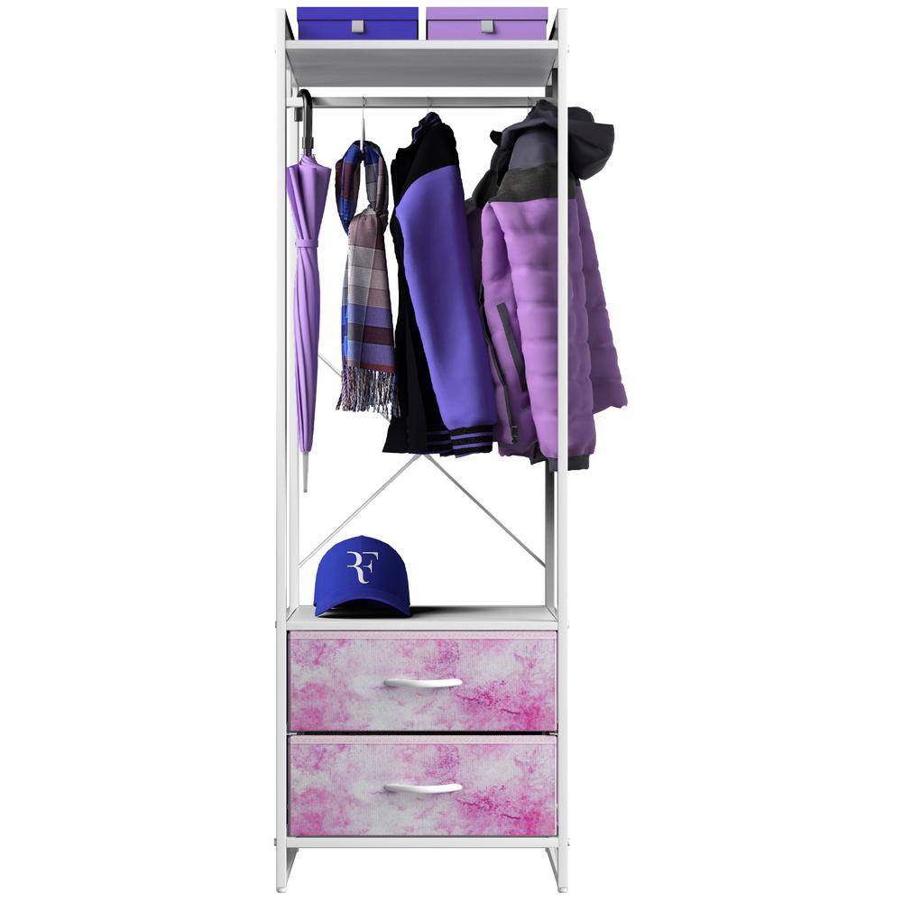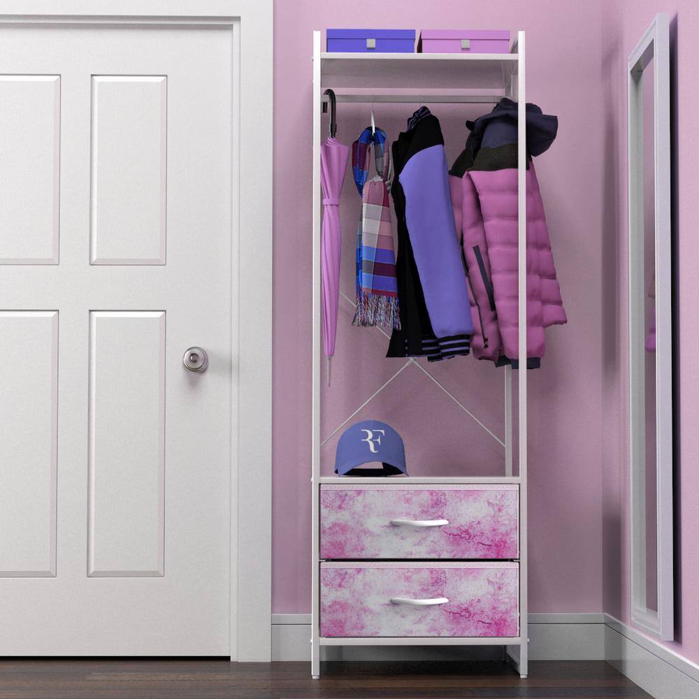 Sorbus Tie-Dye Pink Steel Clothes Rack with Fabric Drawers and Wood Top 15.25 in. W x 70 in. H