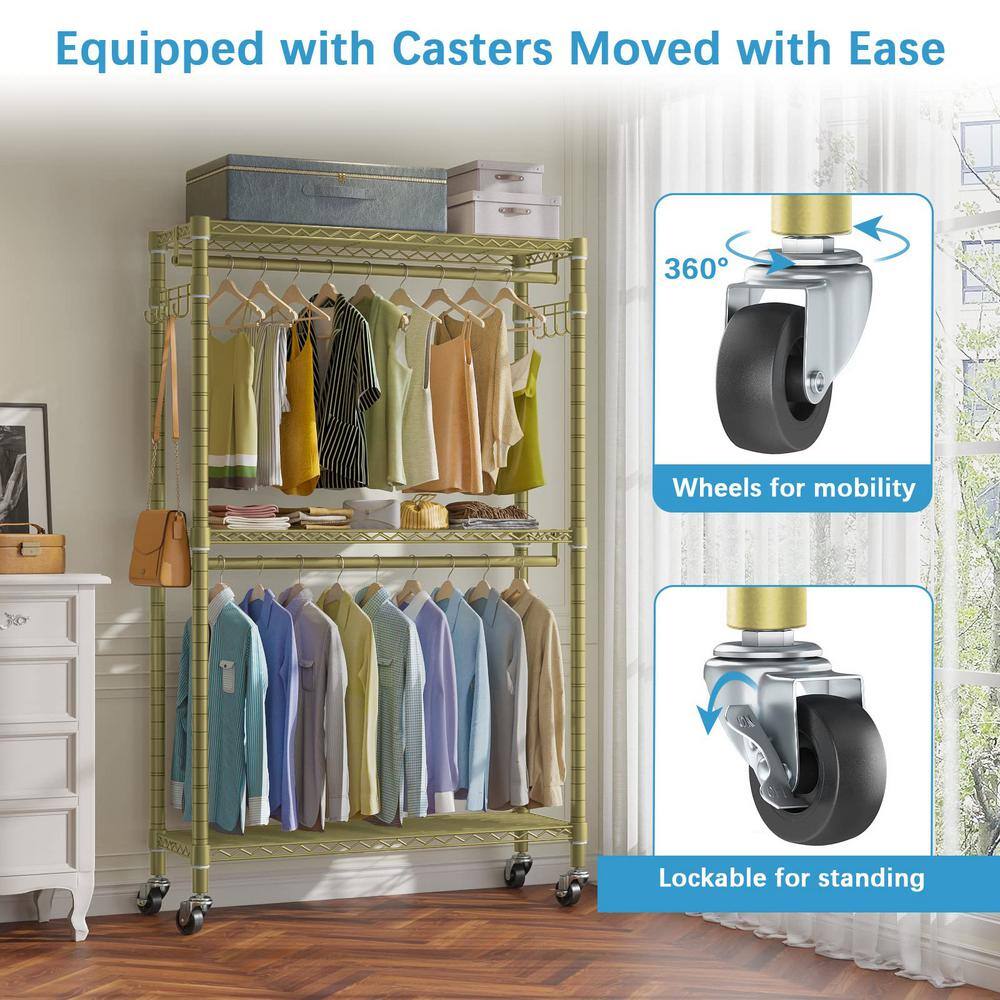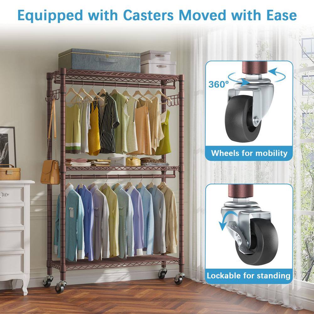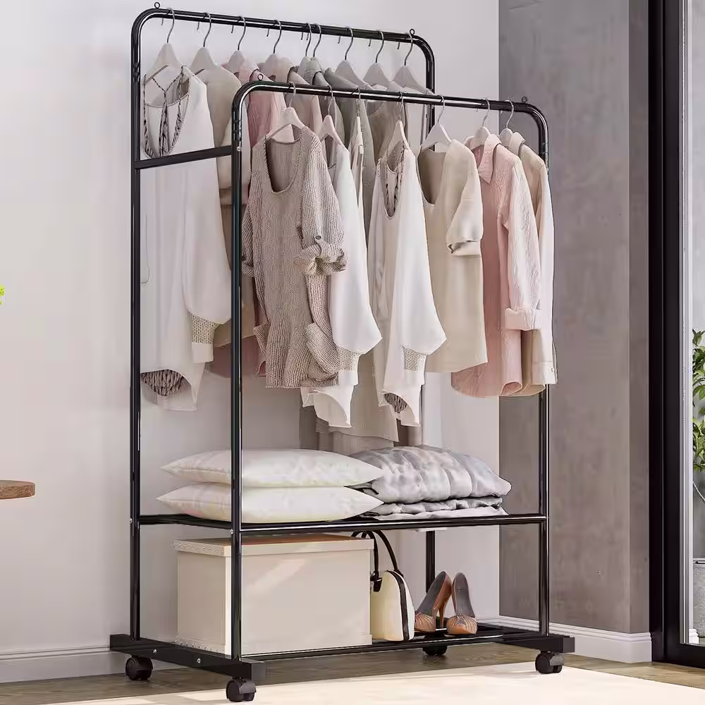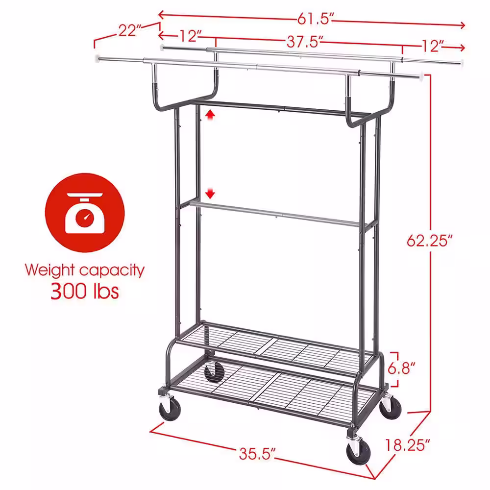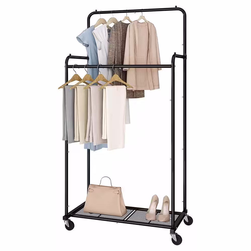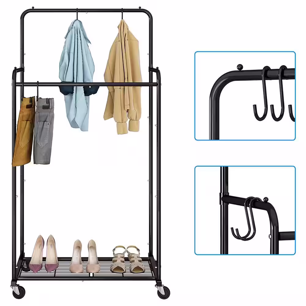 None Black Metal Garment Clothes Rack With Double Rod 29 in. W x 60 in. H