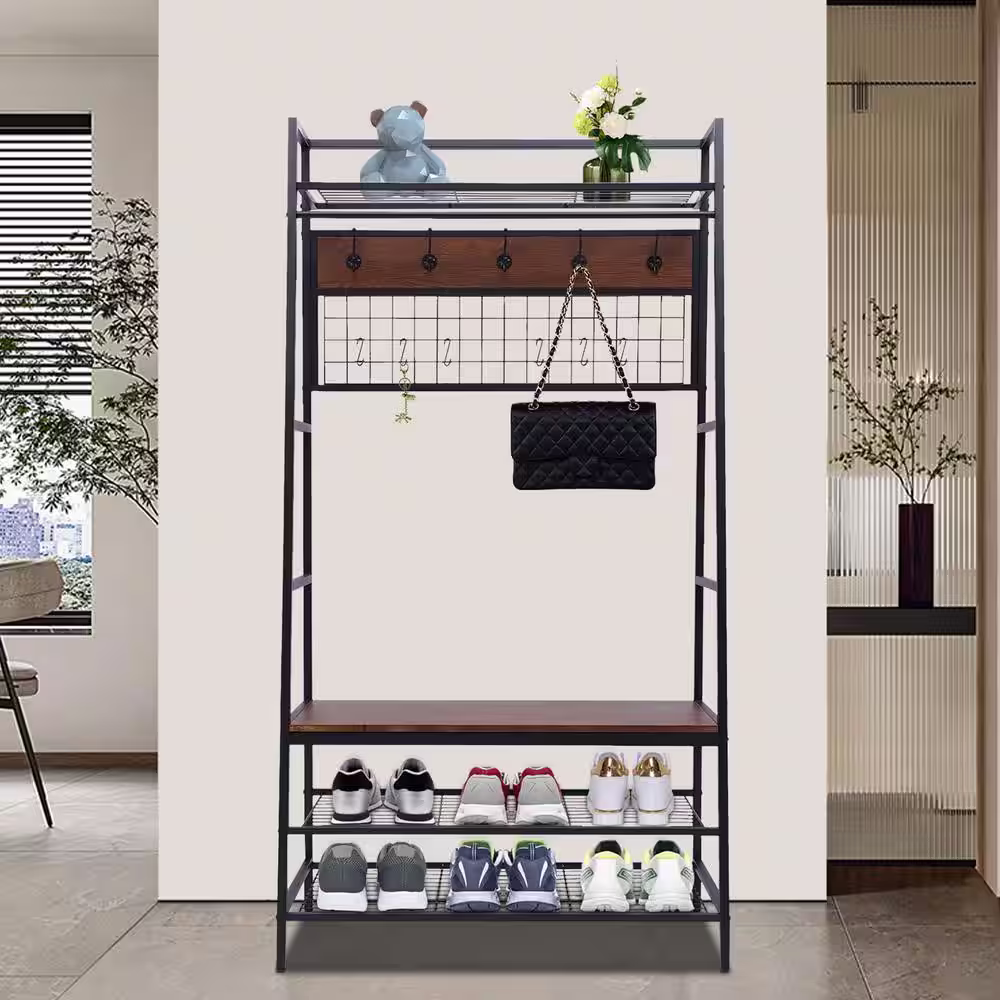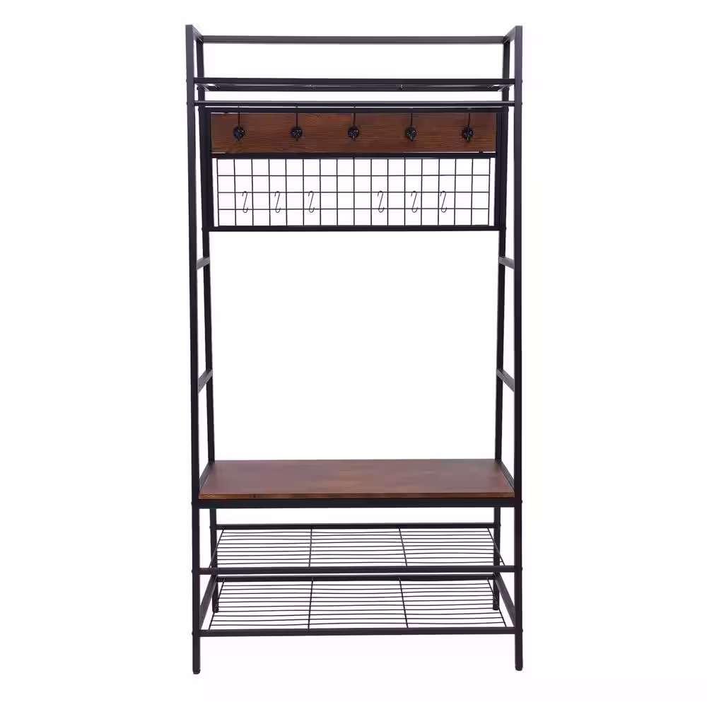 None Black Metal Garment Clothes Rack Double Rods 31.5 in. W x 63 in. H