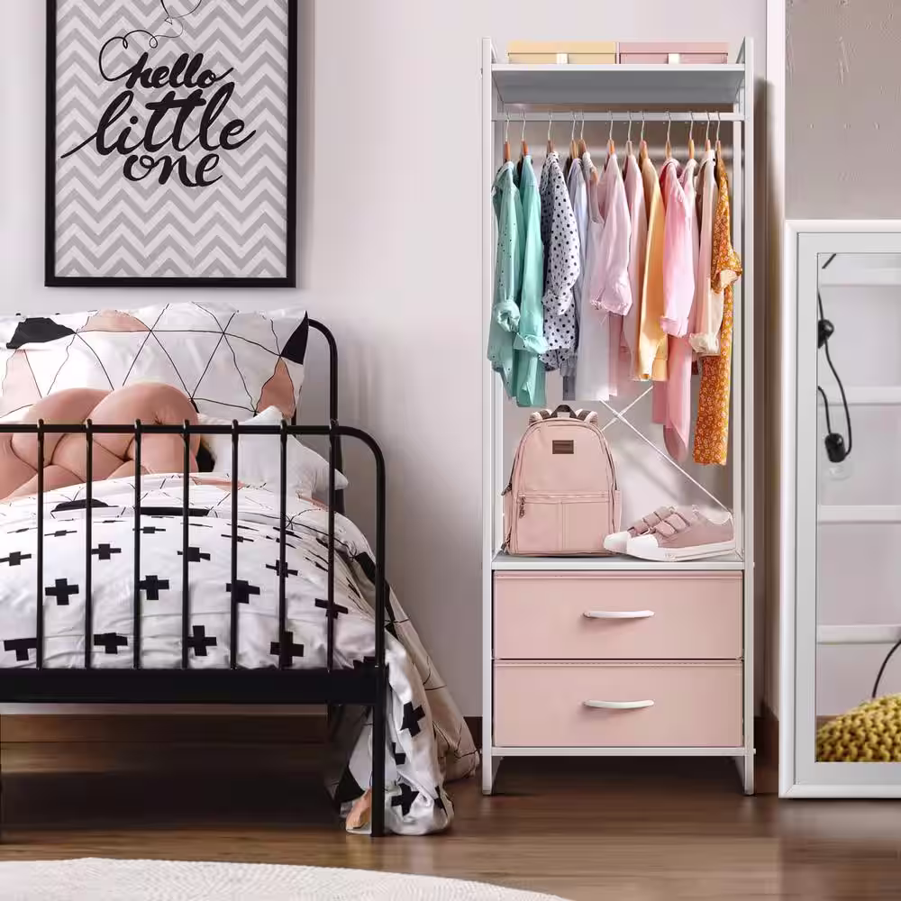 Sorbus Pink Steel Clothes Rack with Fabric Drawers and Wood Top 15.25 in. W x 70 in. H