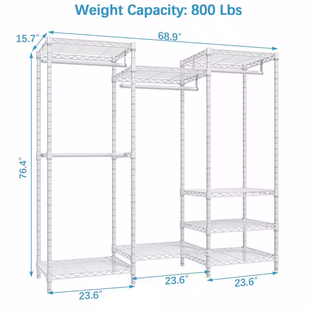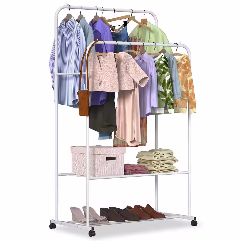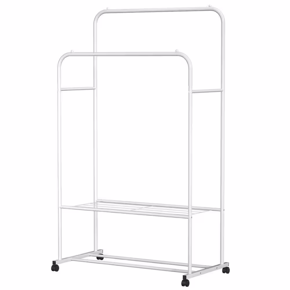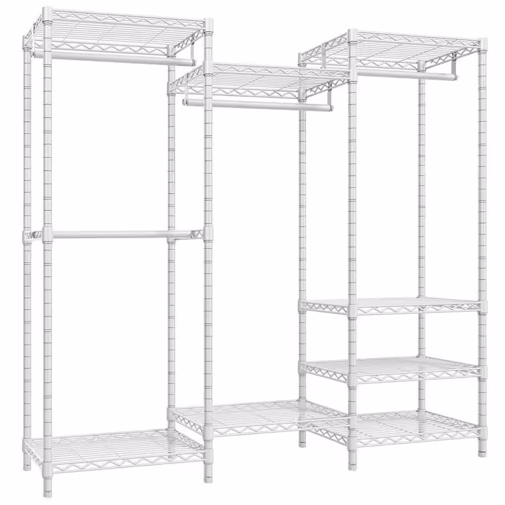 None White Metal Garment Clothes Rack with Shelves 47 in. W x 62 in. H