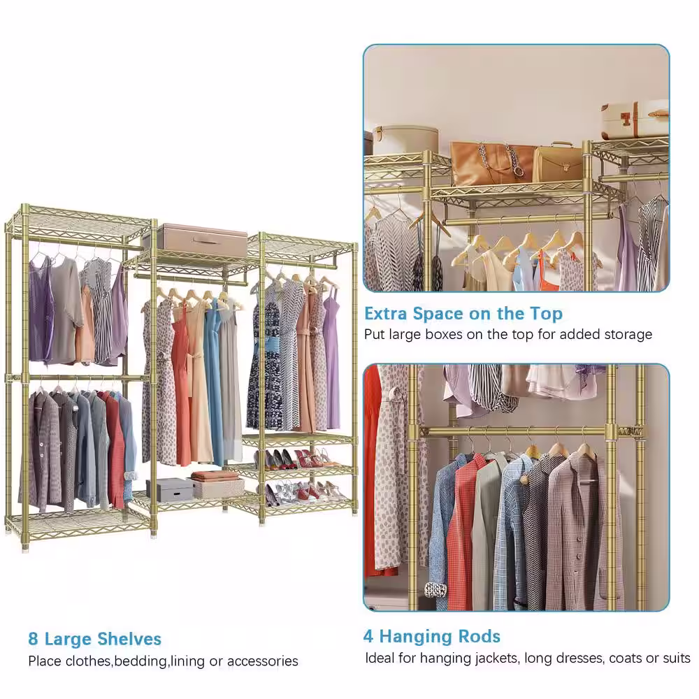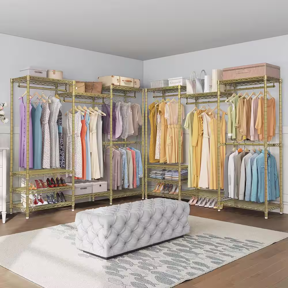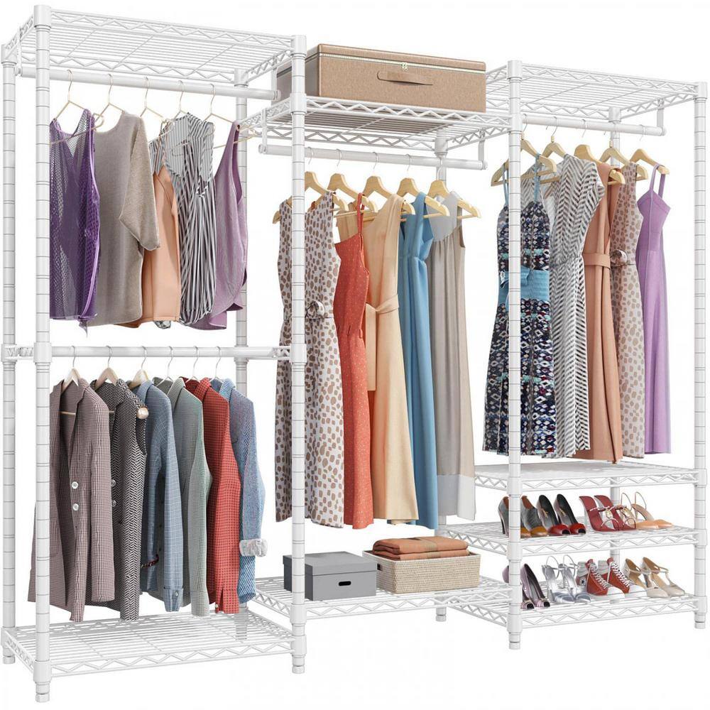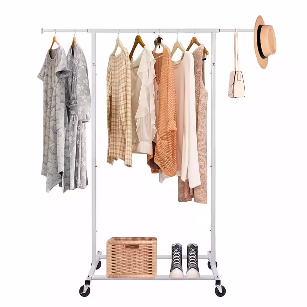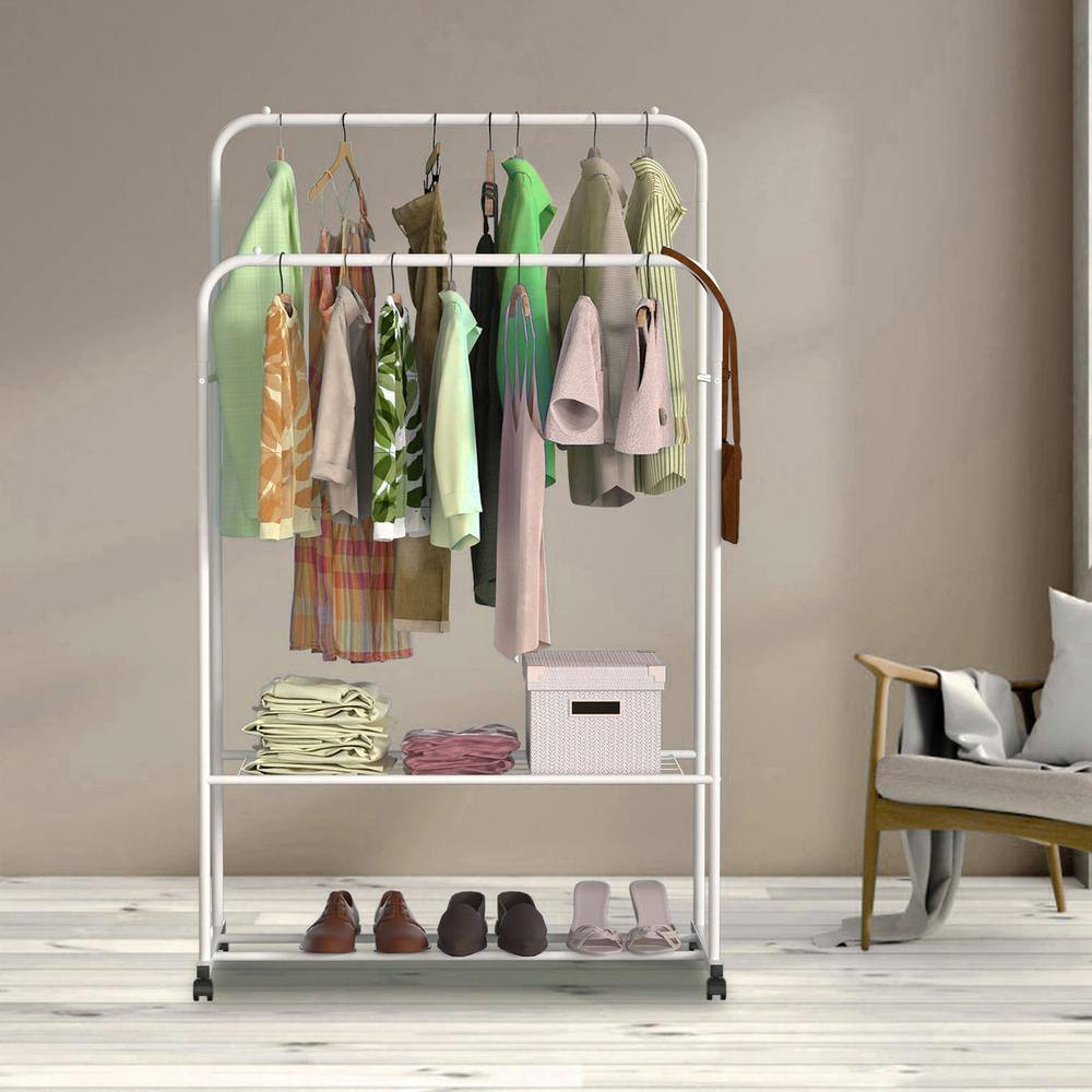None White Metal Garment Clothes Rack with Shelves 47 in. W x 62 in. H