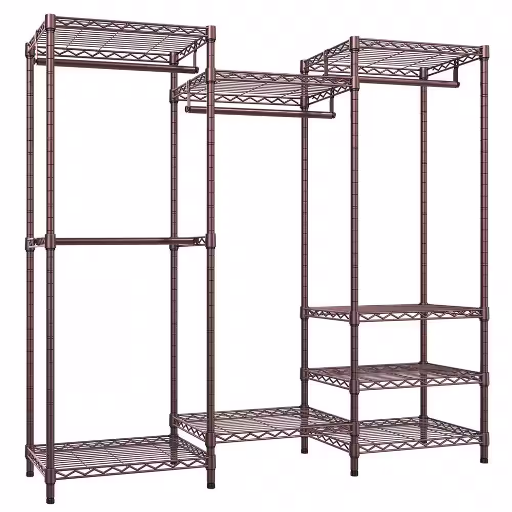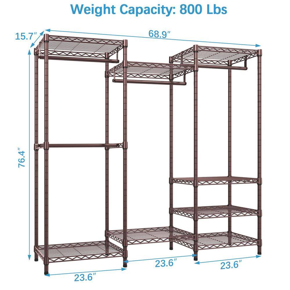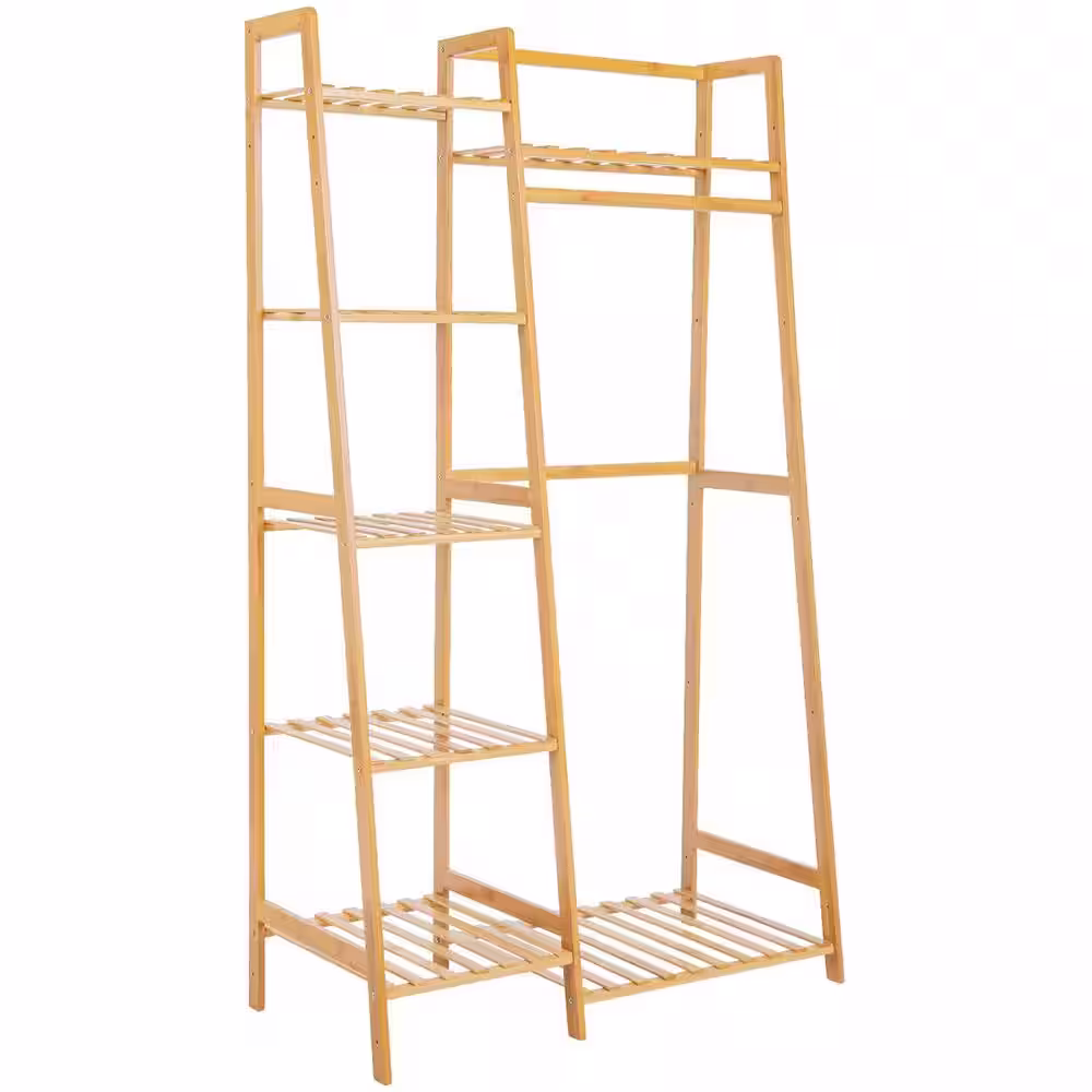 None Brown Bamboo Garment Clothes Rack with 5 Shelves 32 in. W x 55 in. H