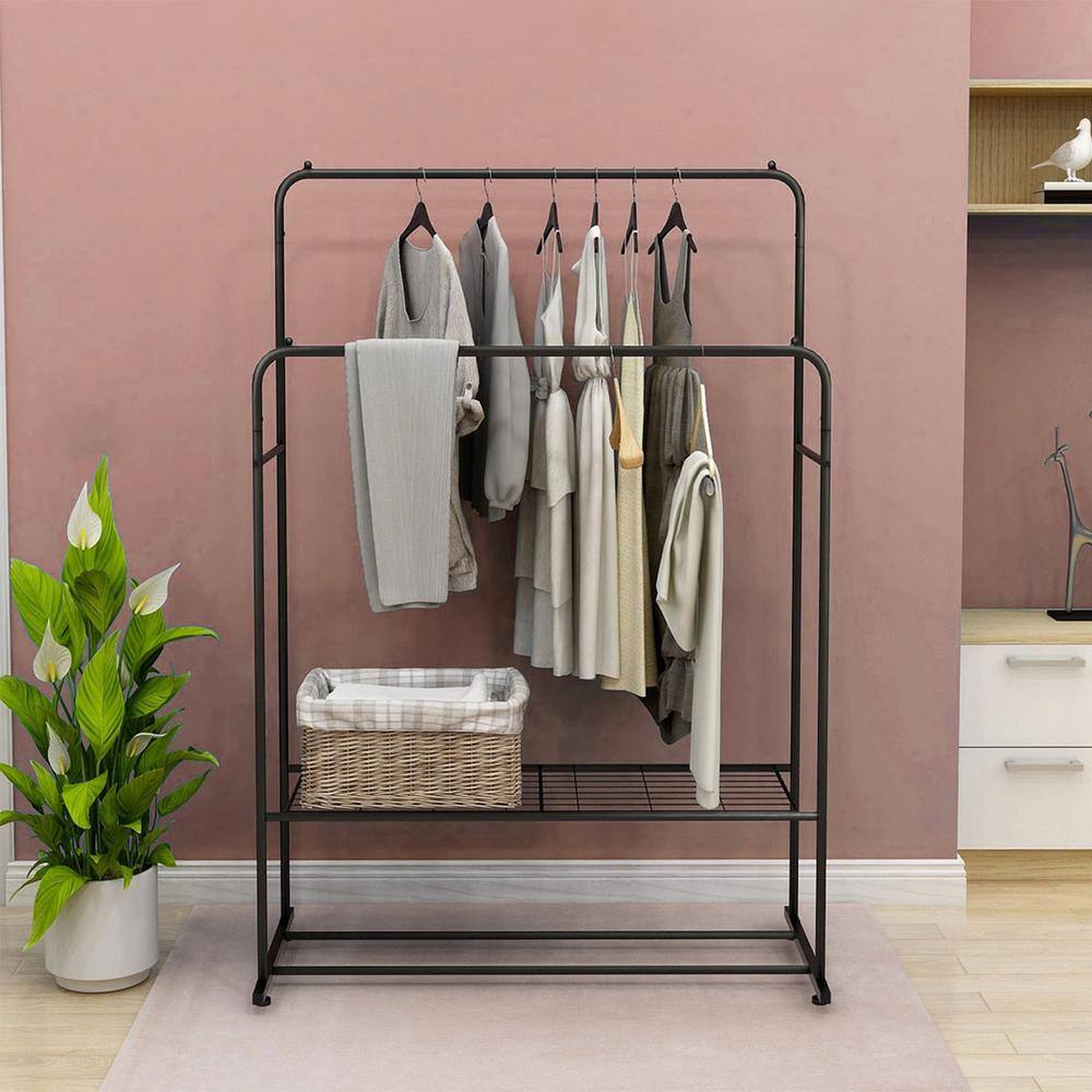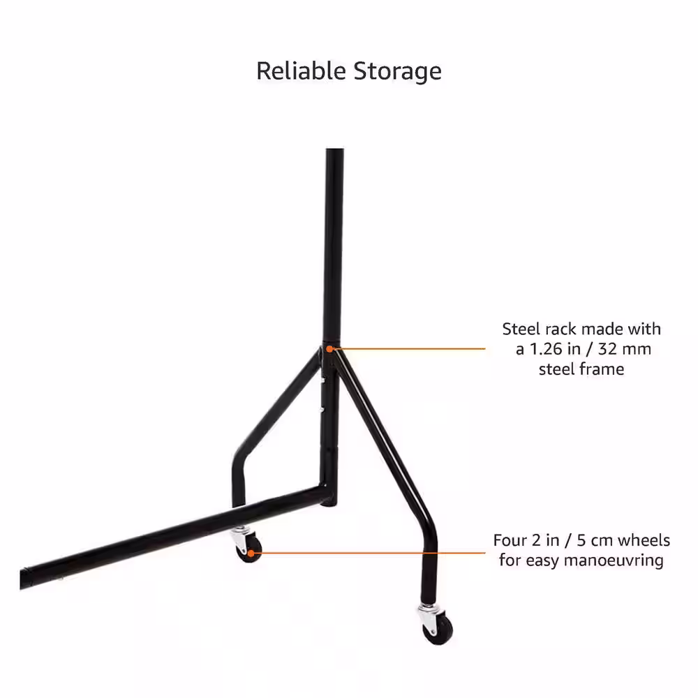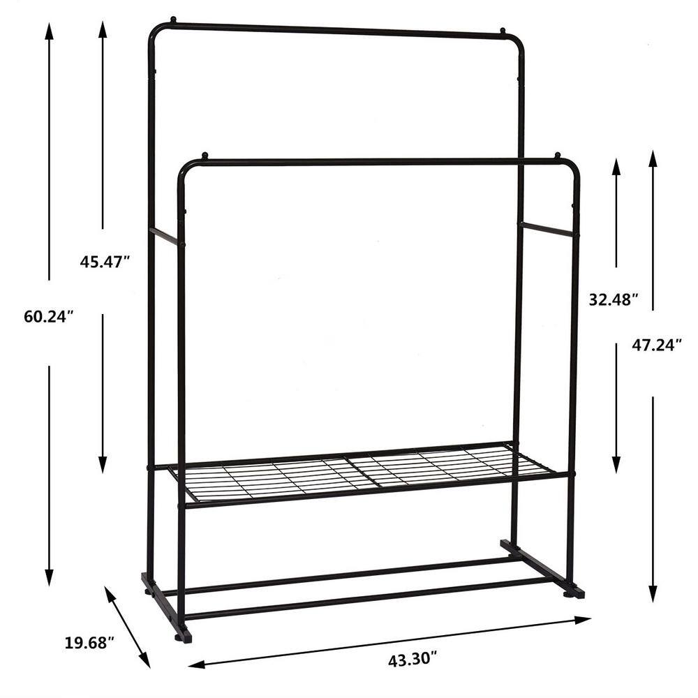 None Black Metal Extendable Garment Clothes Rack 30.5 in. W x 65 in. H