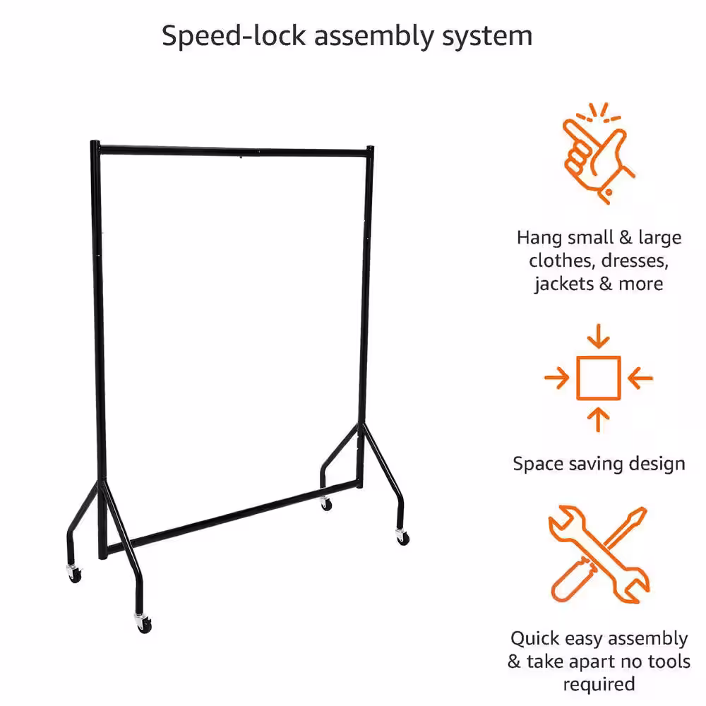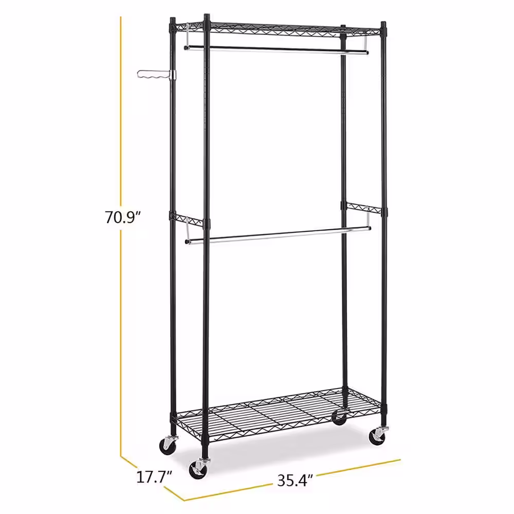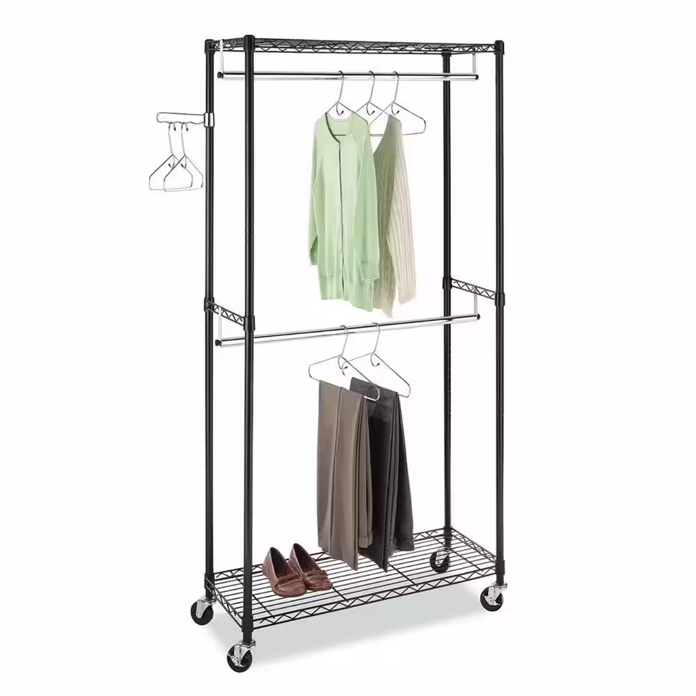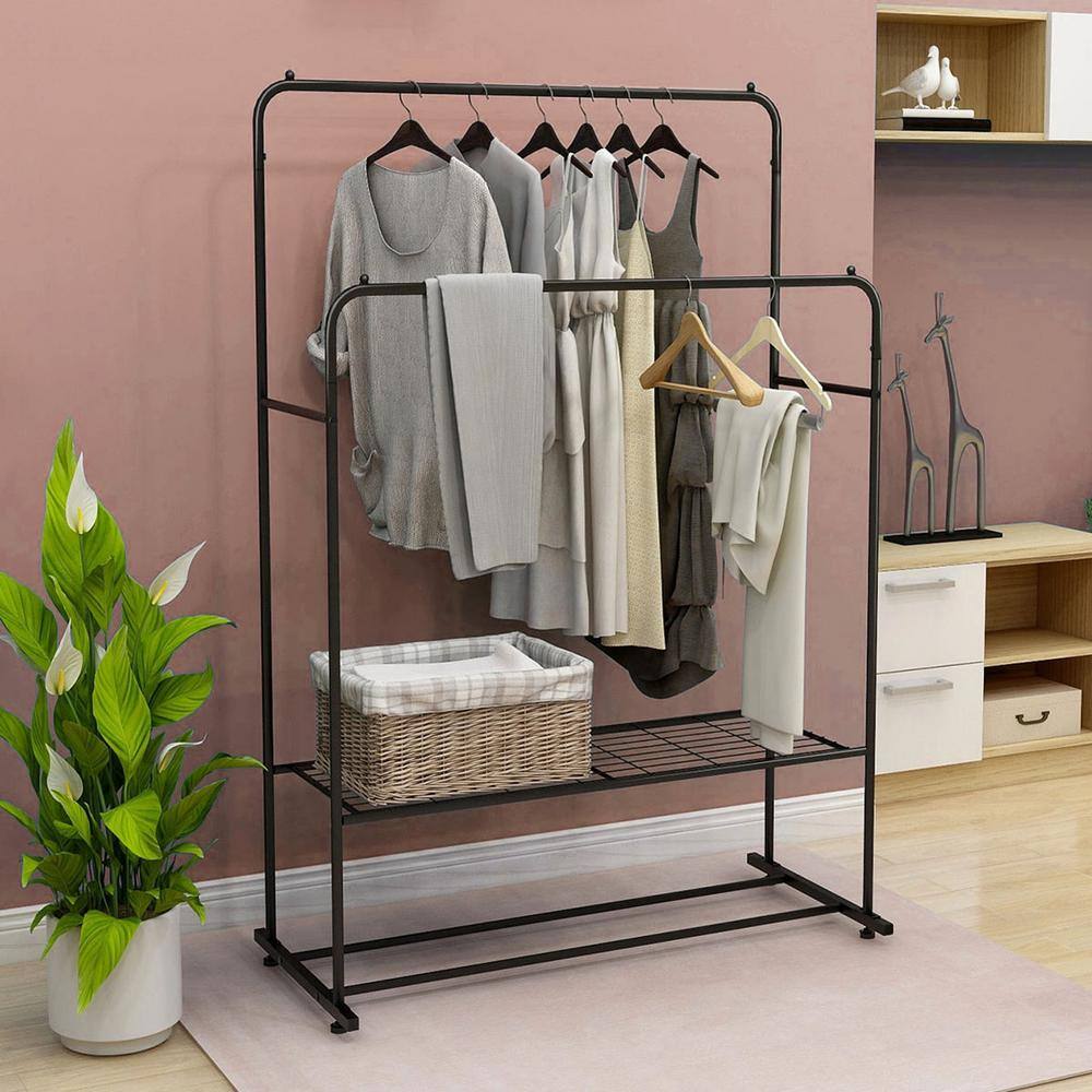 None Black Metal Extendable Garment Clothes Rack 30.5 in. W x 65 in. H