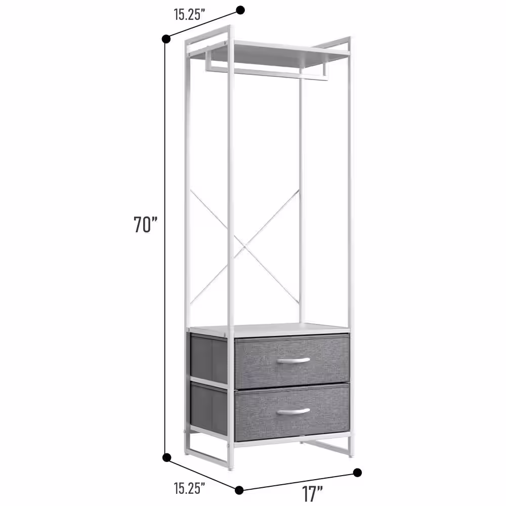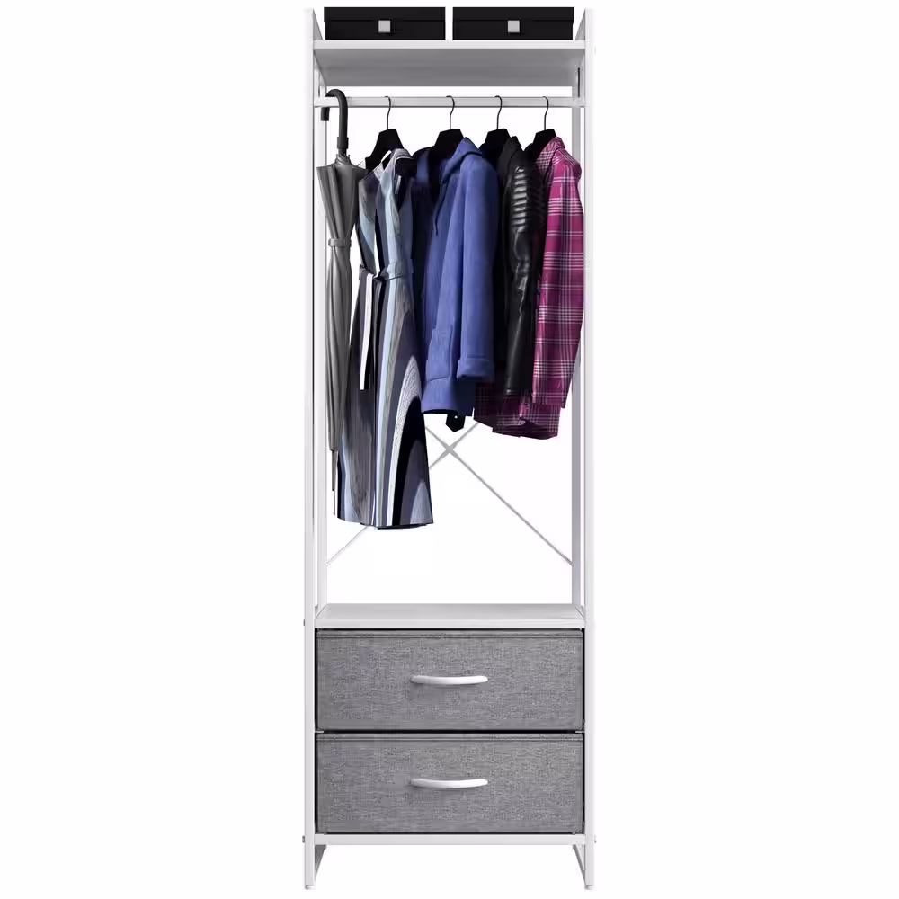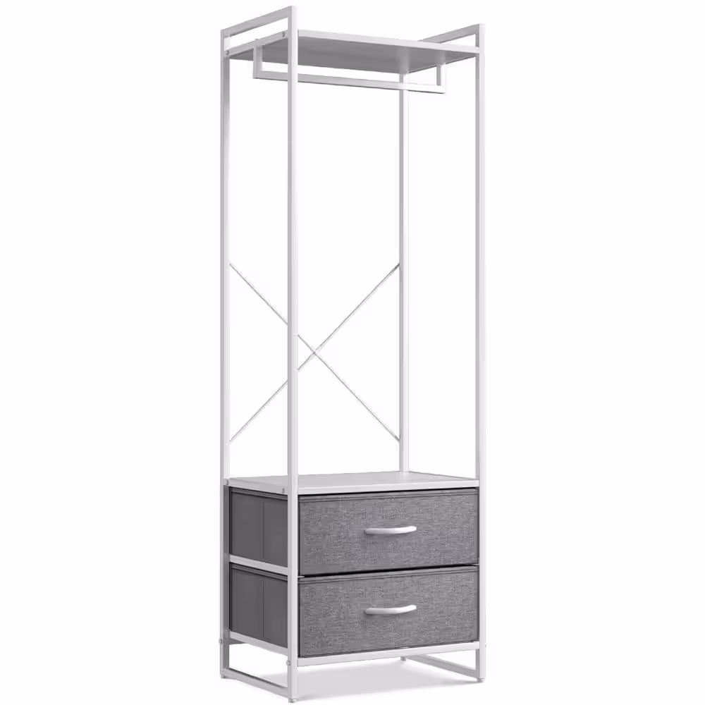 Sorbus White Steel Clothes Rack with Fabric Drawers and Wood Top 15.25 in. W x 70 in. H