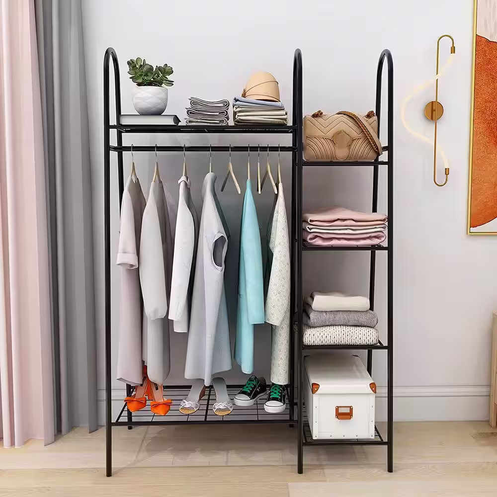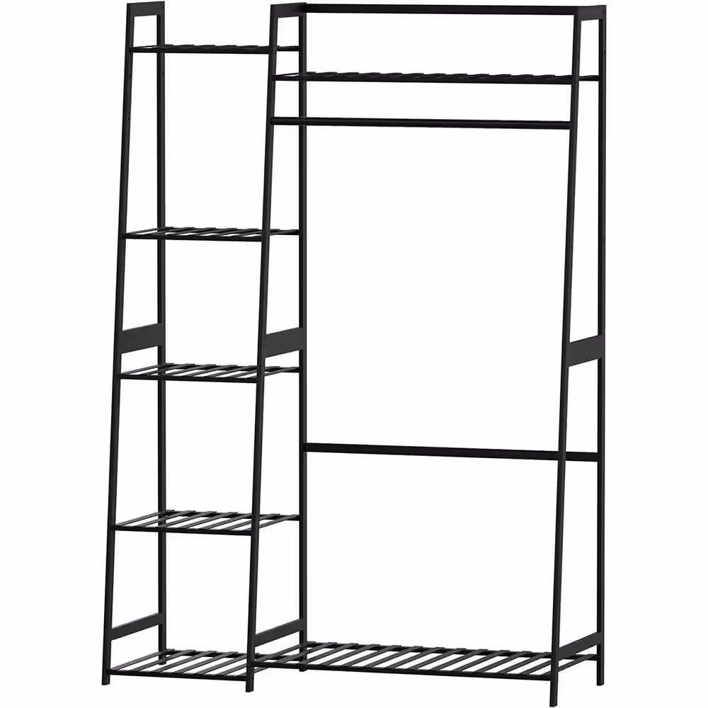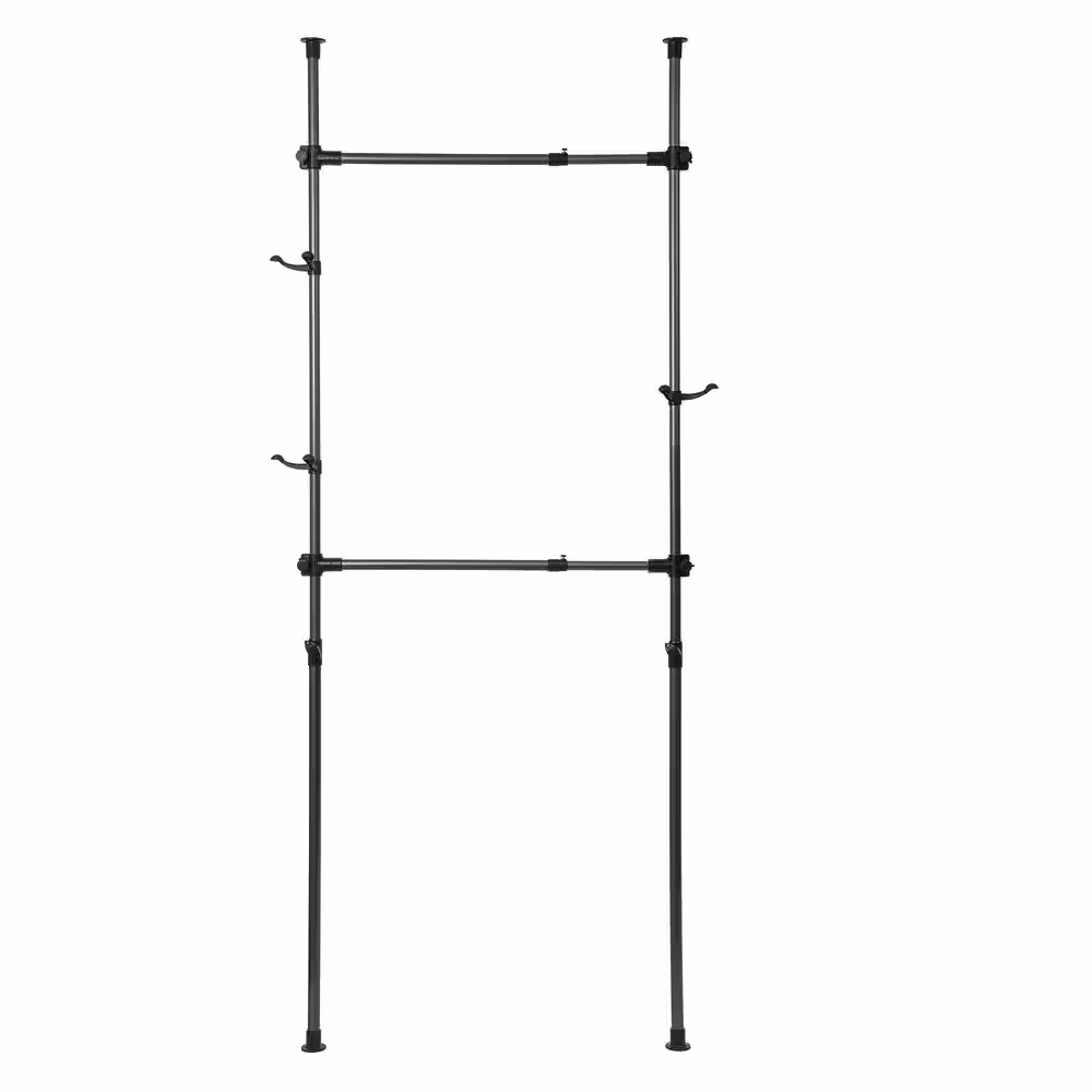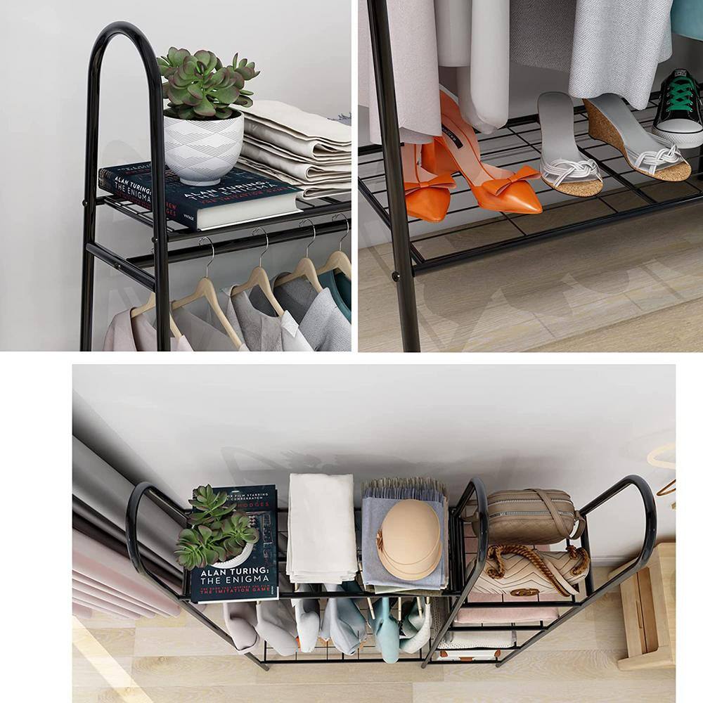 None Black Double Rods Multi-functional Freestanding Metal Clothes Rack 43.30 in. W x 60.24 in. H