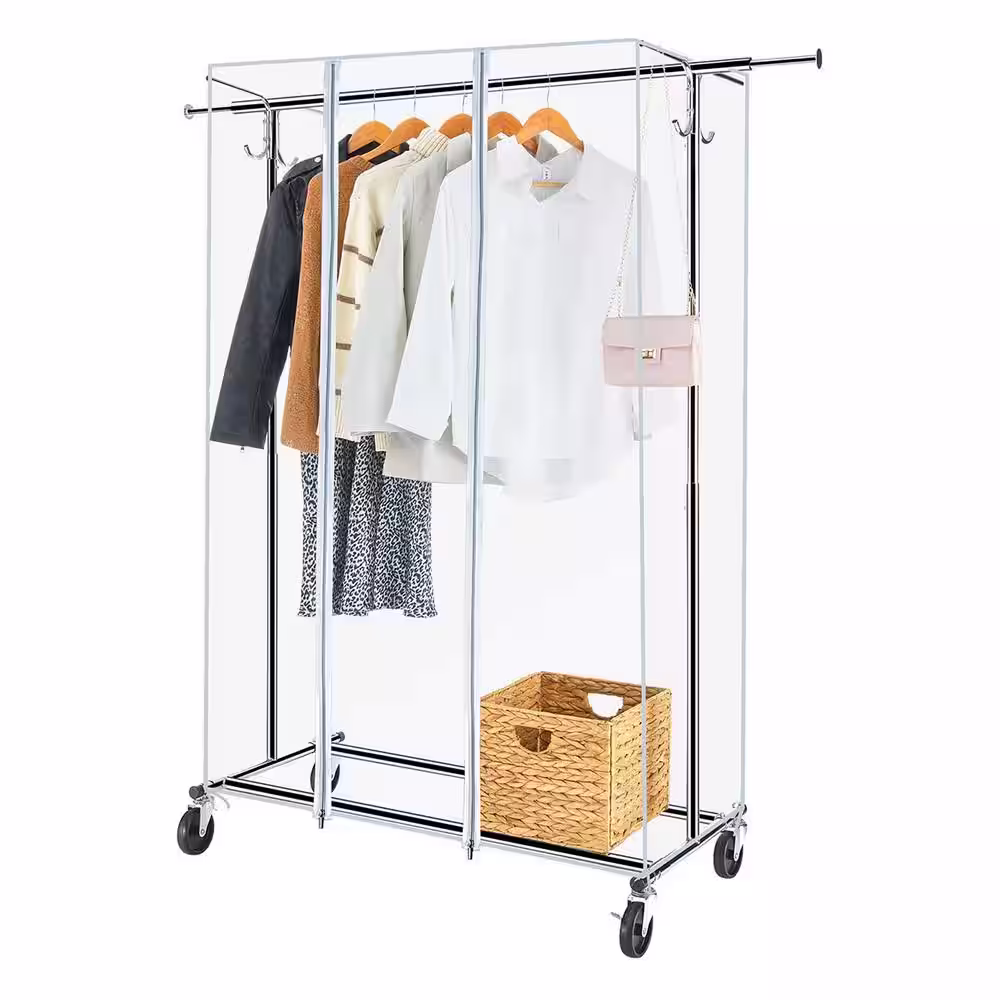 None Chrome Steel Garment Clothes Rack Adjustable 59 in. W x 63 in. H
