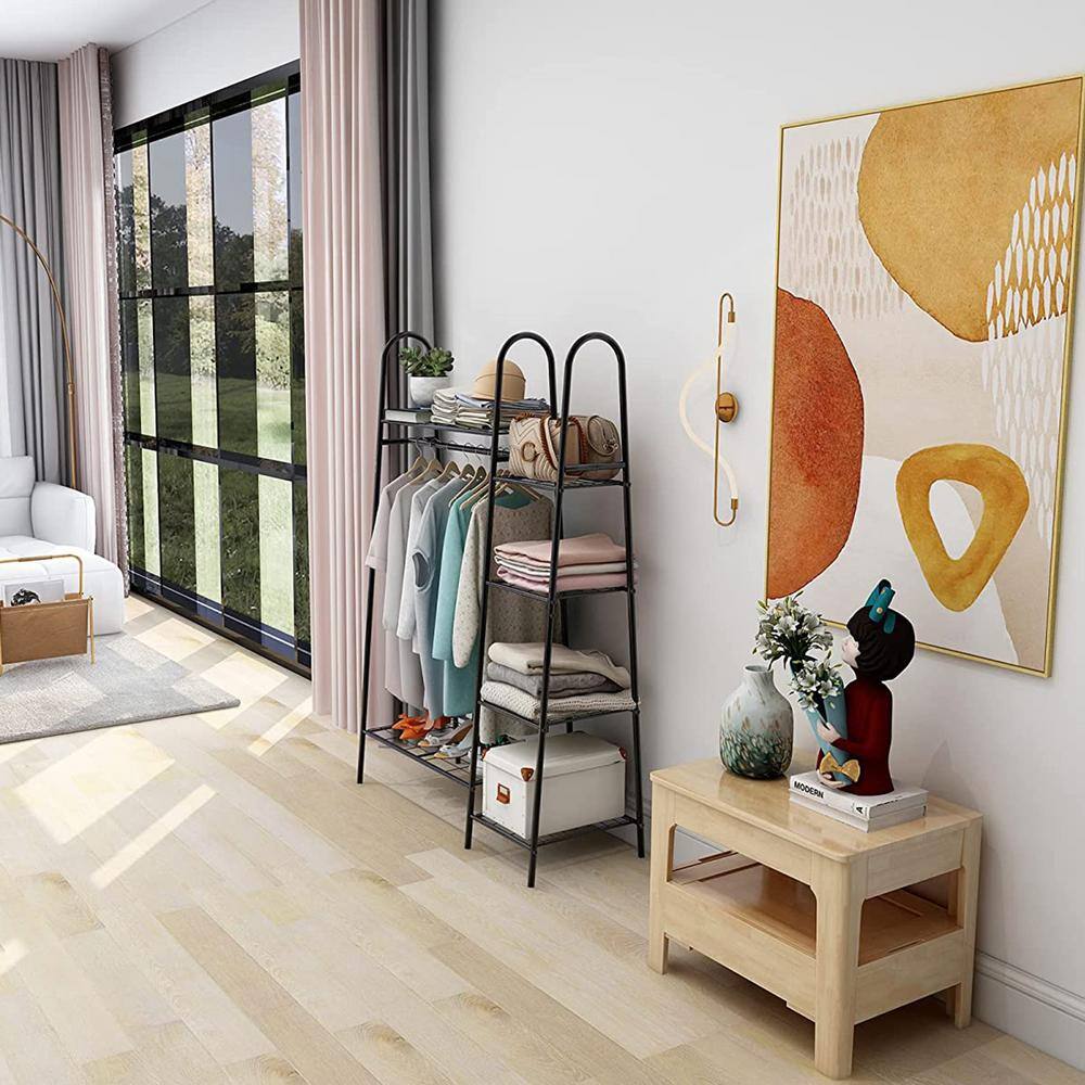 None Black Metal Garment Clothes Rack with 4 Tiers Shelves 37 in. W x 59 in. H