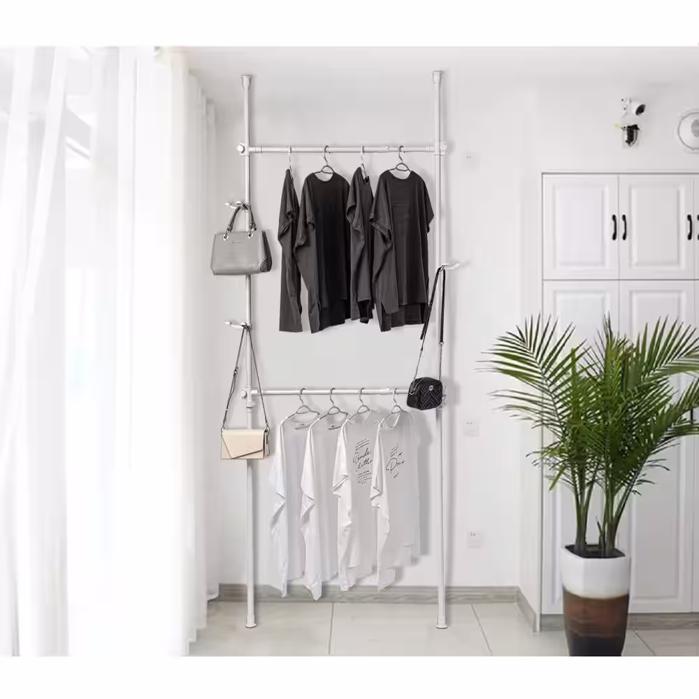 None Chrome Steel Garment Clothes Rack Adjustable 67 in. W x 66 in. H