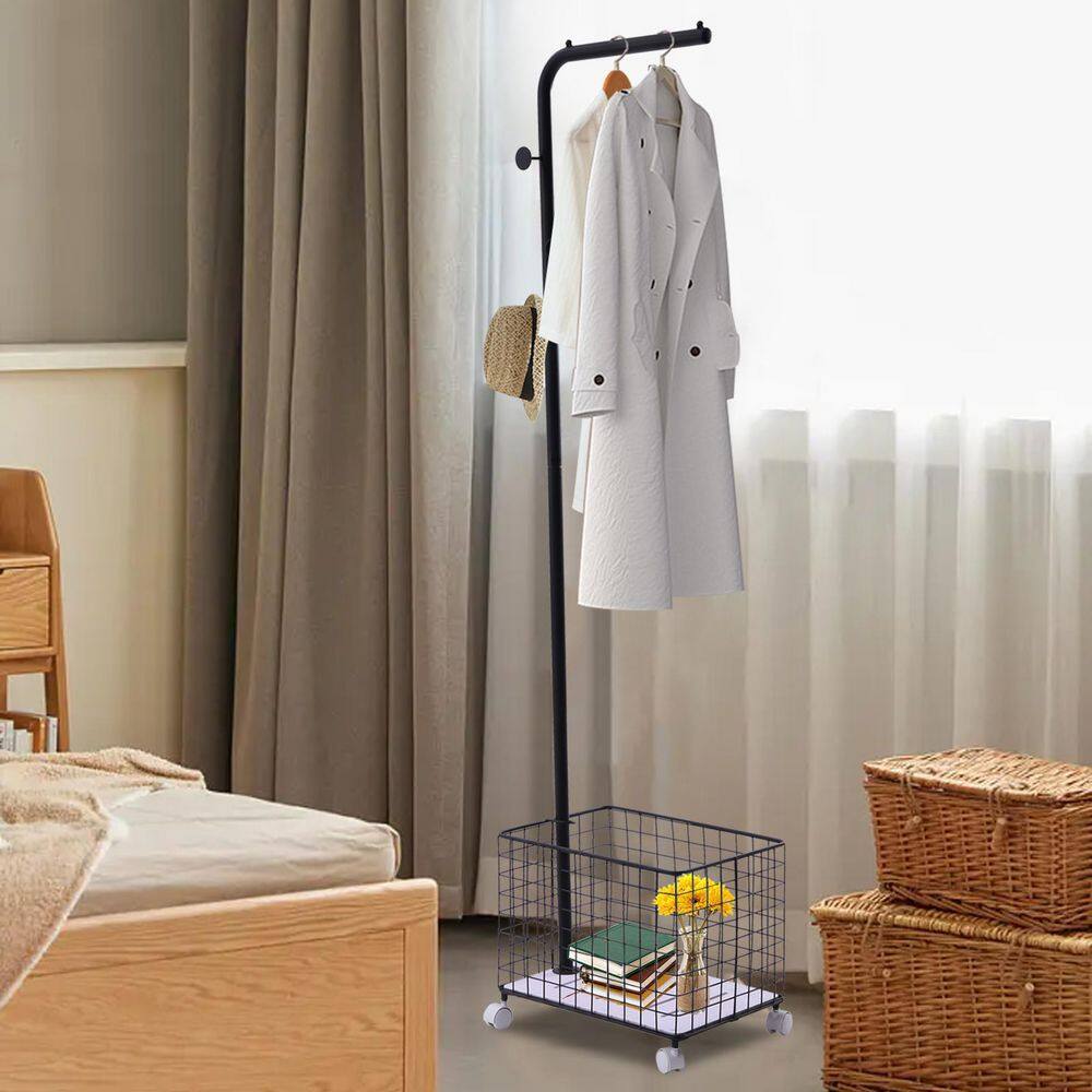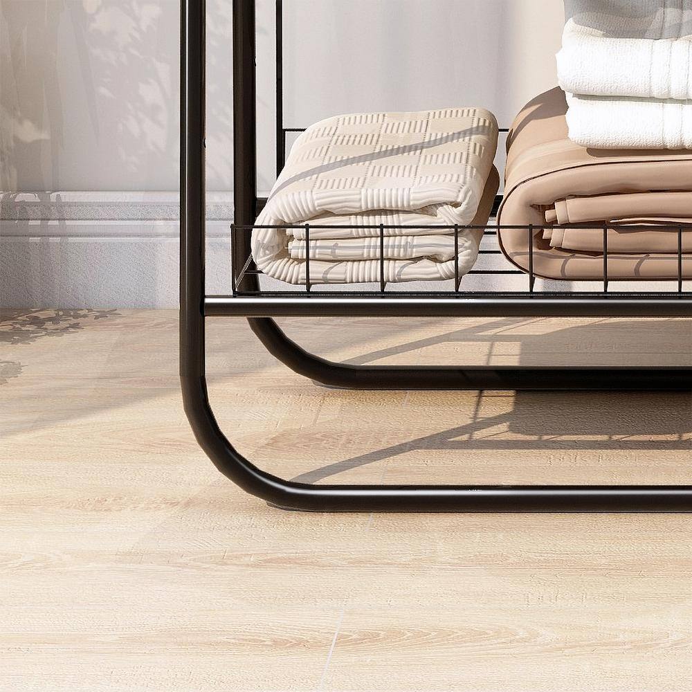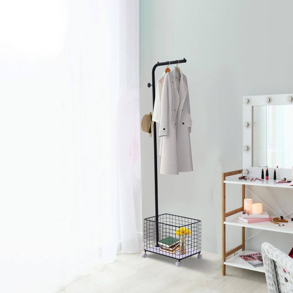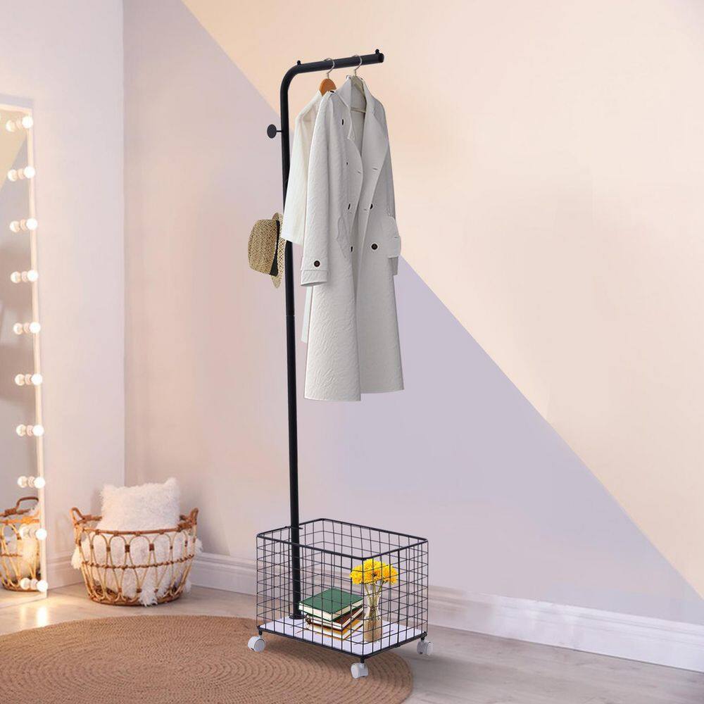 None Black Metal Clothes Rack with Storage Basket 17.7 in. W x 68.9 in. H